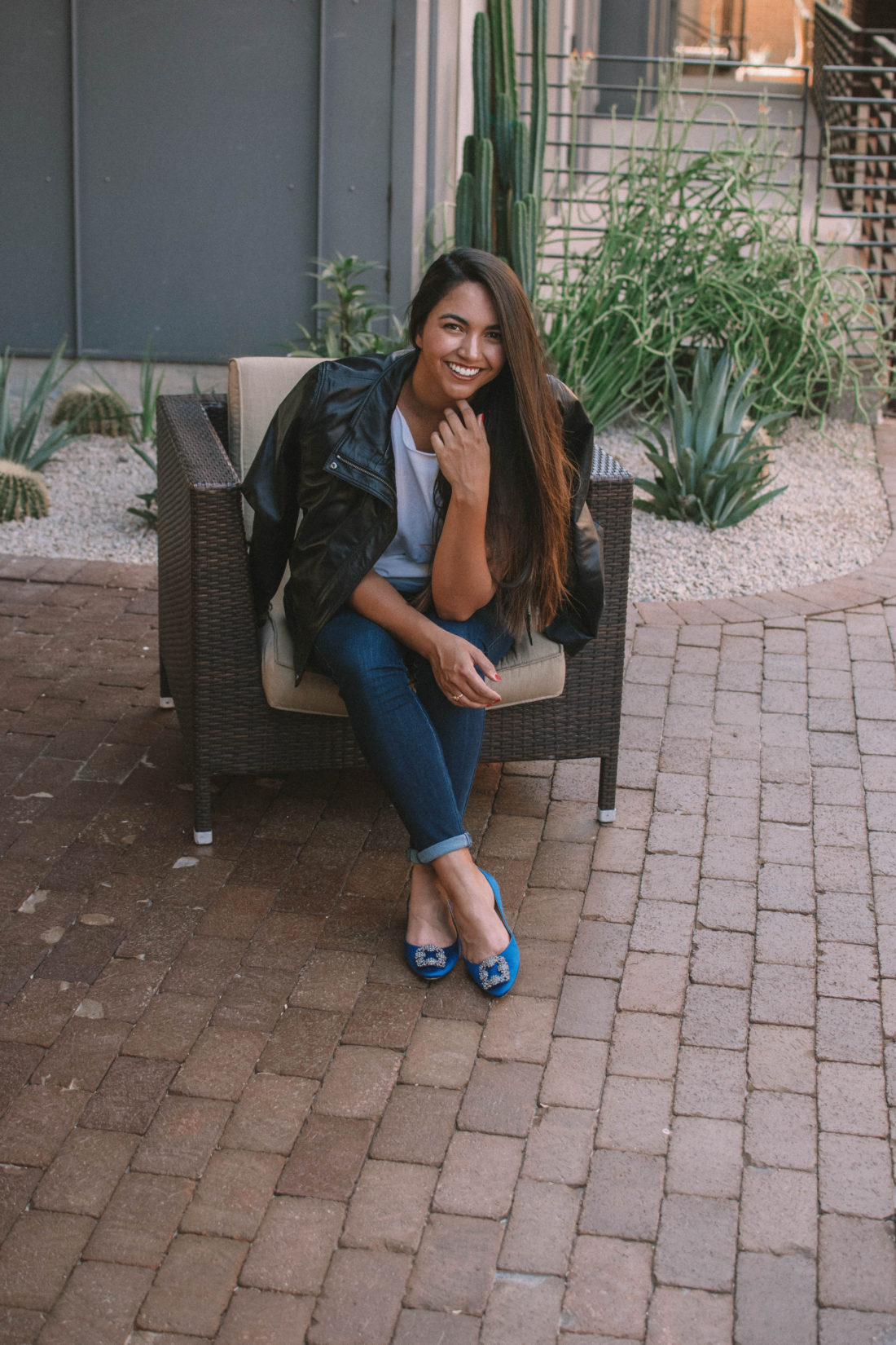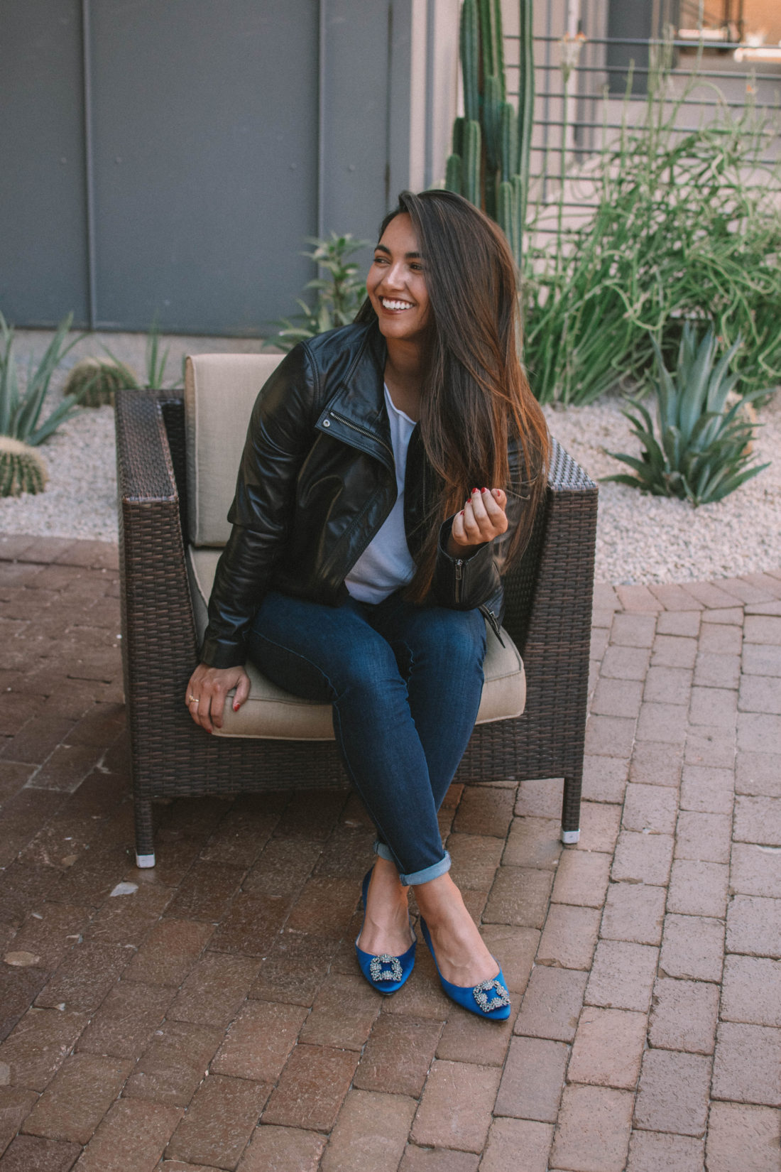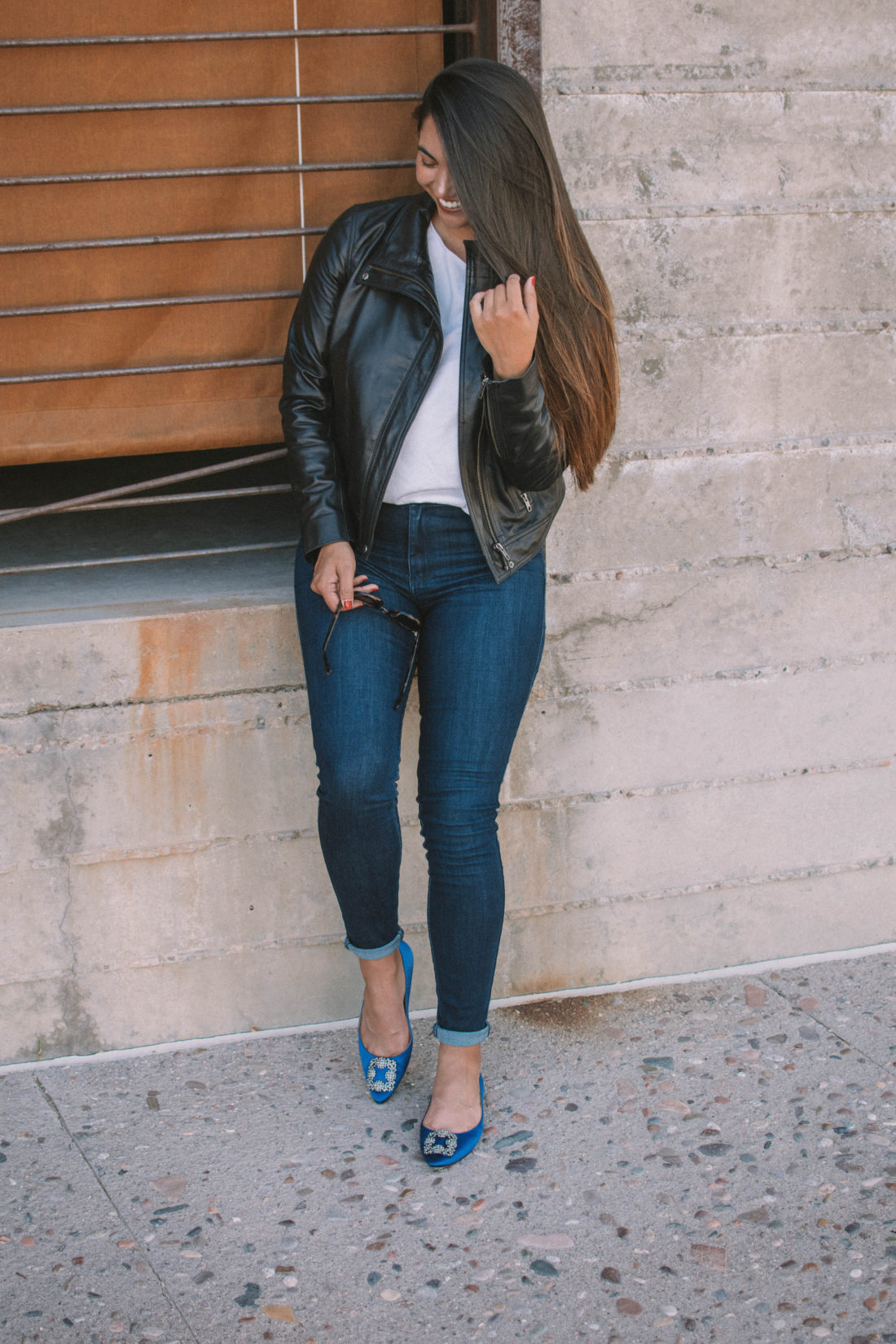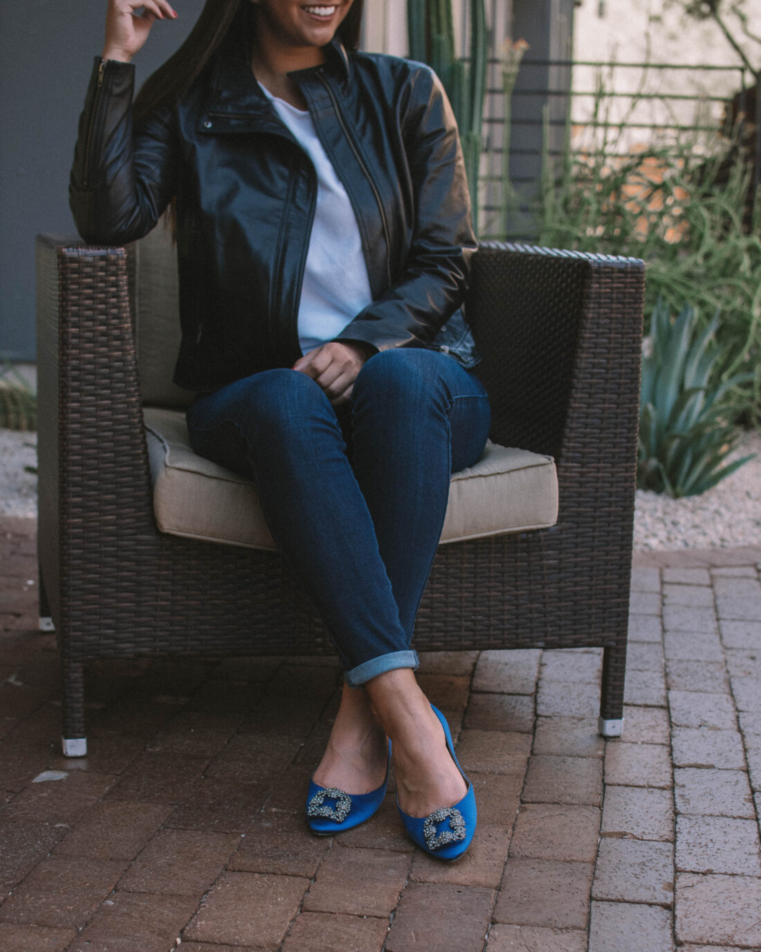 My most recent addition was this pair of Manolo Blahnik Hangisi flats in a royal blue color. I’ve wanted them for a while and ended up pulling the trigger when they showed up in my size on The RealReal. Even though I purchased the shoes pretty hastily, I already knew I wanted to buy them at full price, so it wasn’t exactly an impulse purchase.