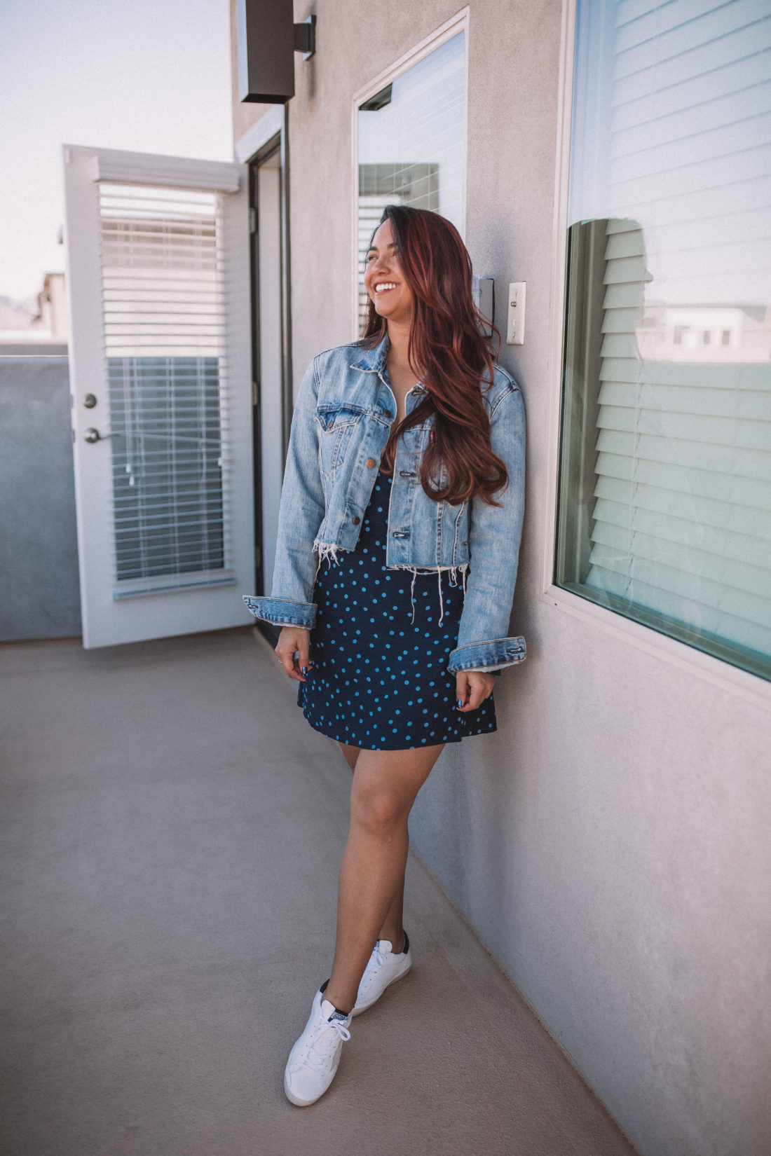 While I don’t talk much about my specific outfits anymore, this outfit deserves a specific callout. With a DIY-cropped denim jacket and a vintage maxi dress I hemmed to make into a mini, this outfit truly is one of a kind.