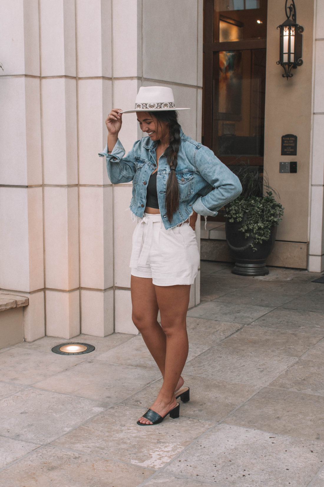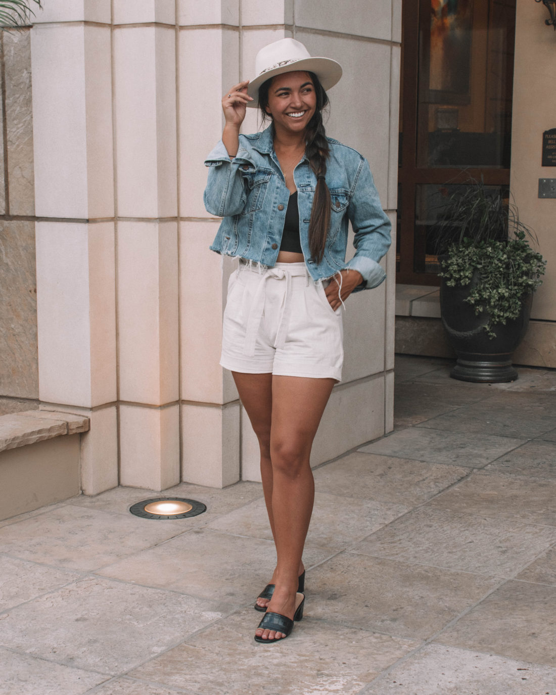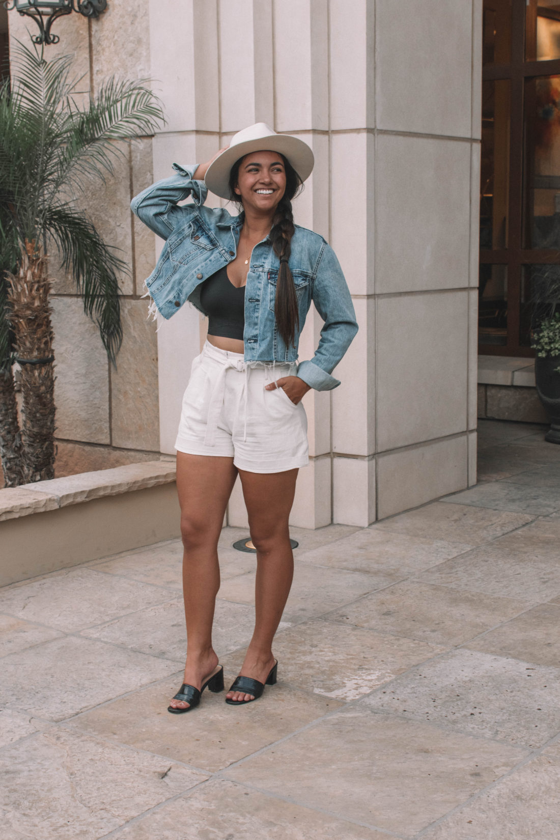 Then, I got True and Co’s true body bra. (Ladies – if you haven’t tried it, it’s truly amazing.) I had it on with shorts while I was lounging around my apartment and ended up throwing on a denim jacket to go get something from my car. The result? A look I kind of liked. The bra is essentially long enough to count as a crop top anyway, right?