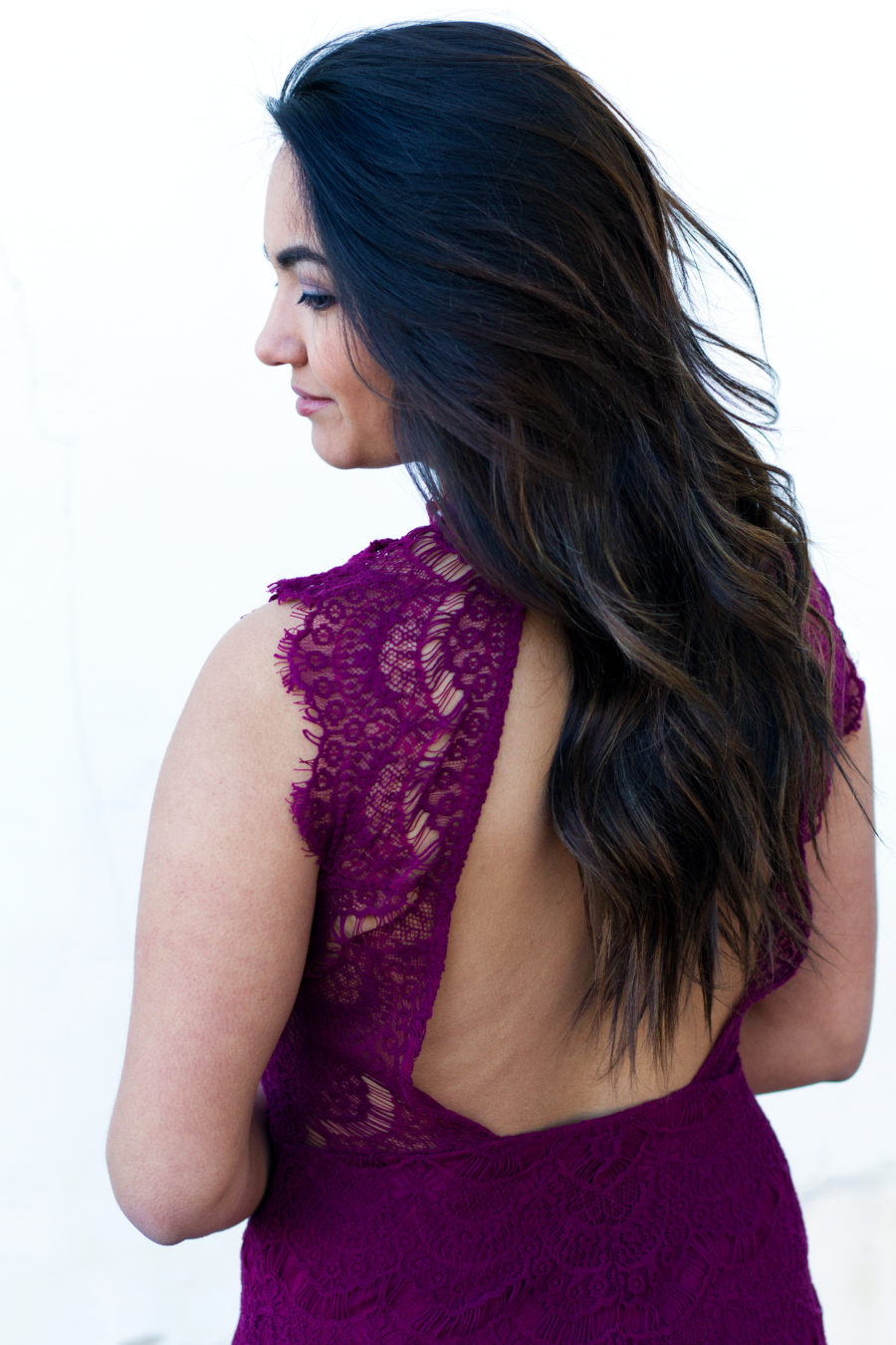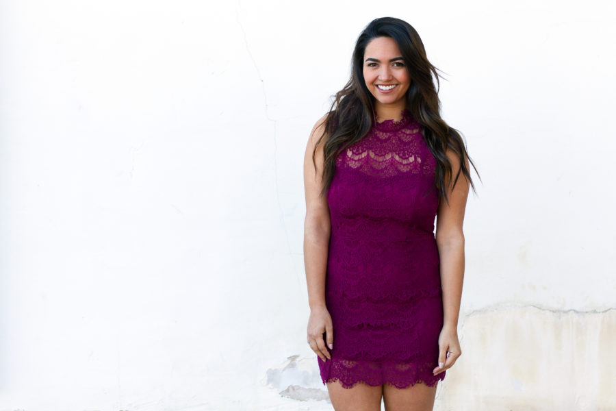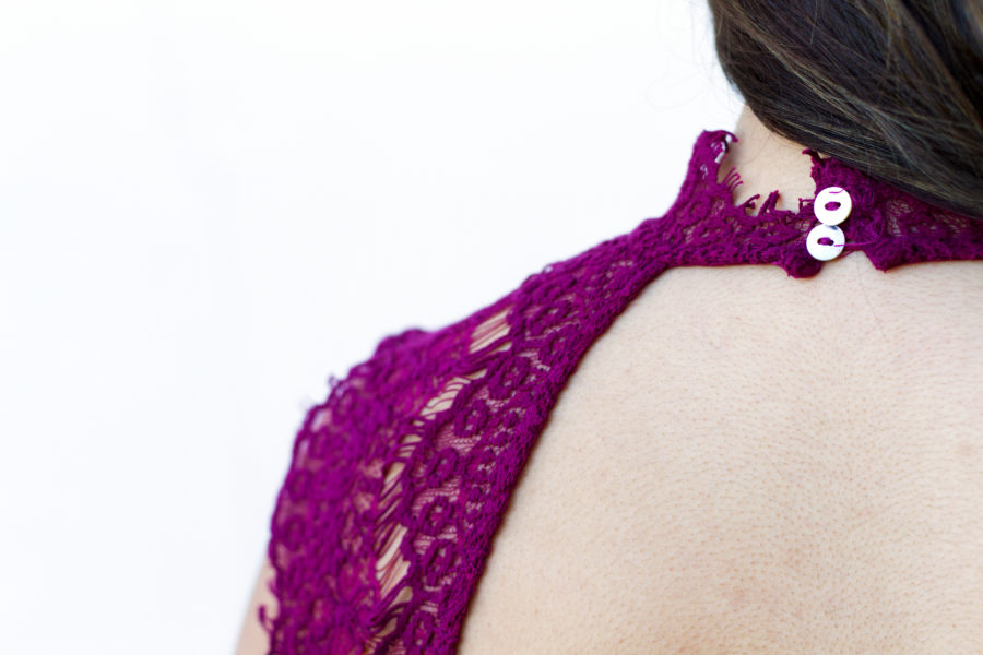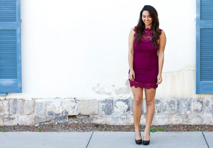 Anyway, if you recognize this dress, it’s because it’s a favorite of mine and I recently wore it to my sorority formal. It’s a lovely piece with delicate lacing and open back detail, which is perfect for a more upscale Valentine’s Day Date. I bought this dress from Free People on a whim, thinking I’d never wear it, but now it’s one of my all time favorite purchases. I do wish I bought it in black but, of course, I bought it in a deep purple. After all, it’s my color.