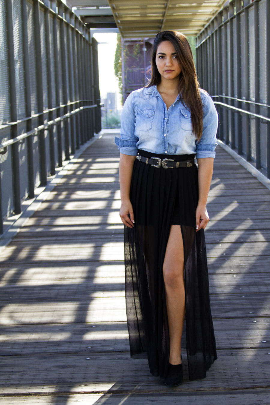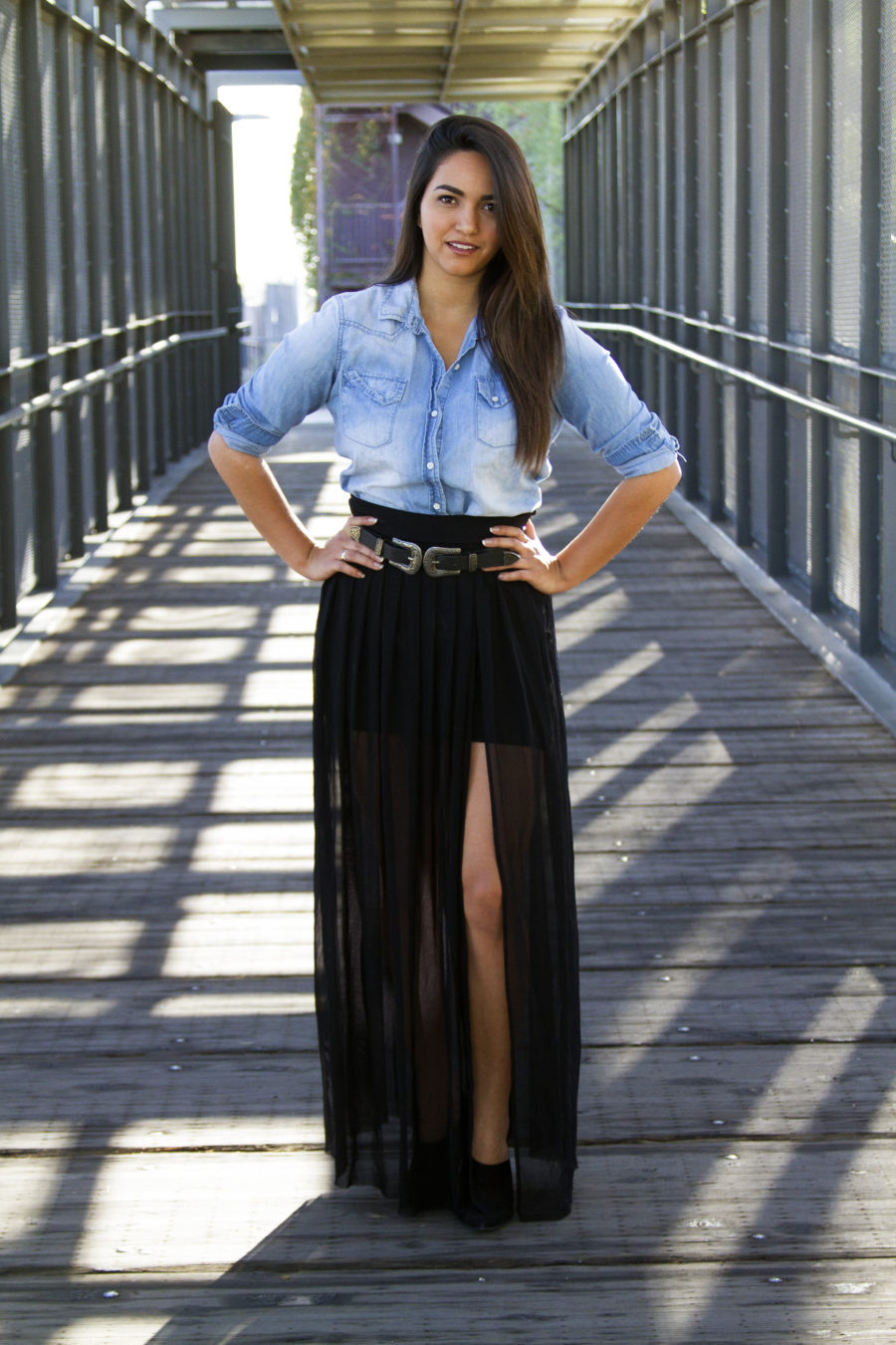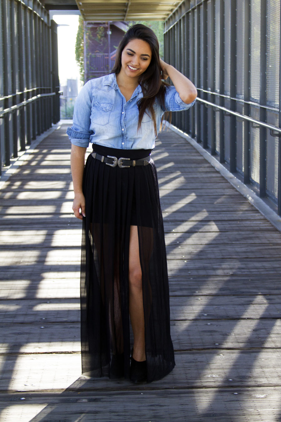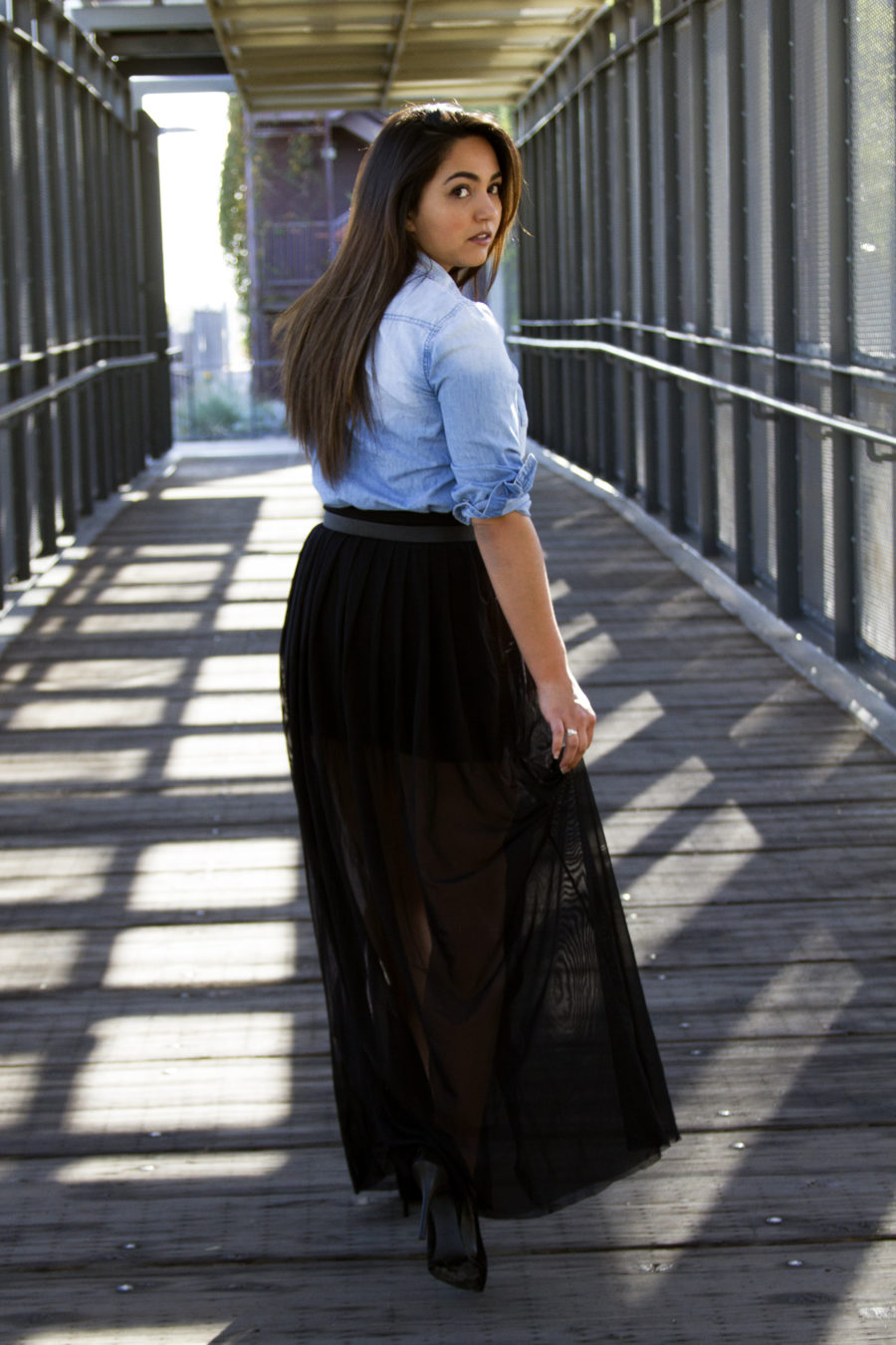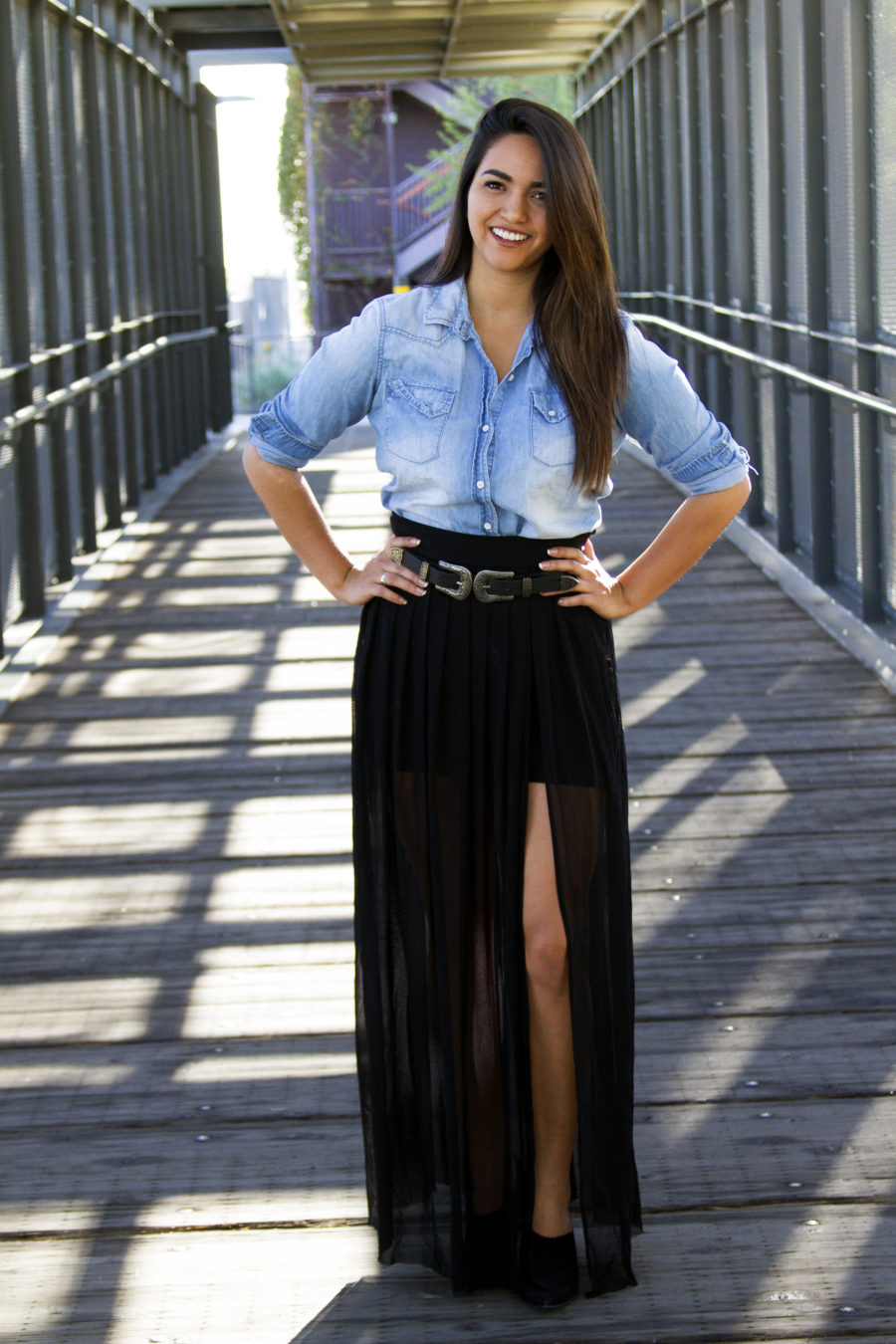 Would never have thought to pair a denim top with that skirt but, it totally works! I actually love it!!