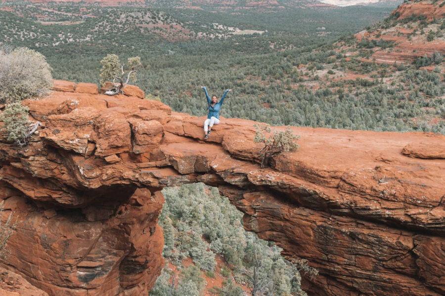This time, we drove up to Sedona on Saturday morning with two things to do; we were going on a hike and a jeep tour. We had already made reservations for a jeep tour, but wanted to do an iconic hike in Sedona.Devil’s bridge is, by far, one of the most iconic hikes in the area. It’s not even a super long or difficult hike either! The weather was about the same as last year, with a chance of rain and a lot of clouds. The cloud cover wasn’t too bad, but we were nervous about getting rained out! Luckily, the weather behaved (for us) so I can give you a few of my tips for making sure you can cross this hike off your bucket list!