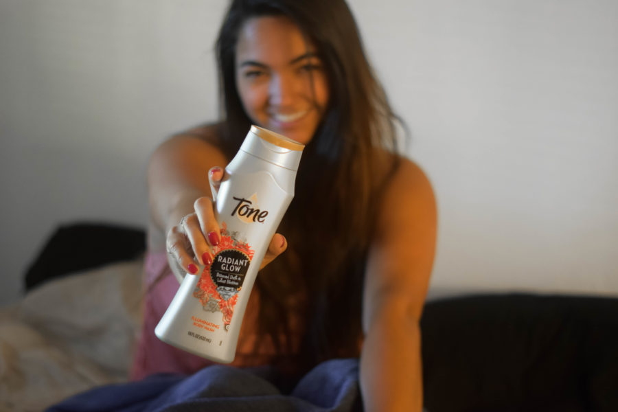 I love taking warm showers after I work out and indulging myself with Tone Skincare. It’s the perfect start to my day! Tone is the perfect mix of frangrance, fashion, and fun – starting my day off with delicious smelling scents that last and keep me feeling confident and sexy the whole day!Now that I’ve been actively taking care of my skin with Tone, my skin has a new healthy and hydrated radiance to it and feels softer than ever. I use the Radiant Glow body wash, which has little glitter flecks in it to give your skin the glow it deserves.