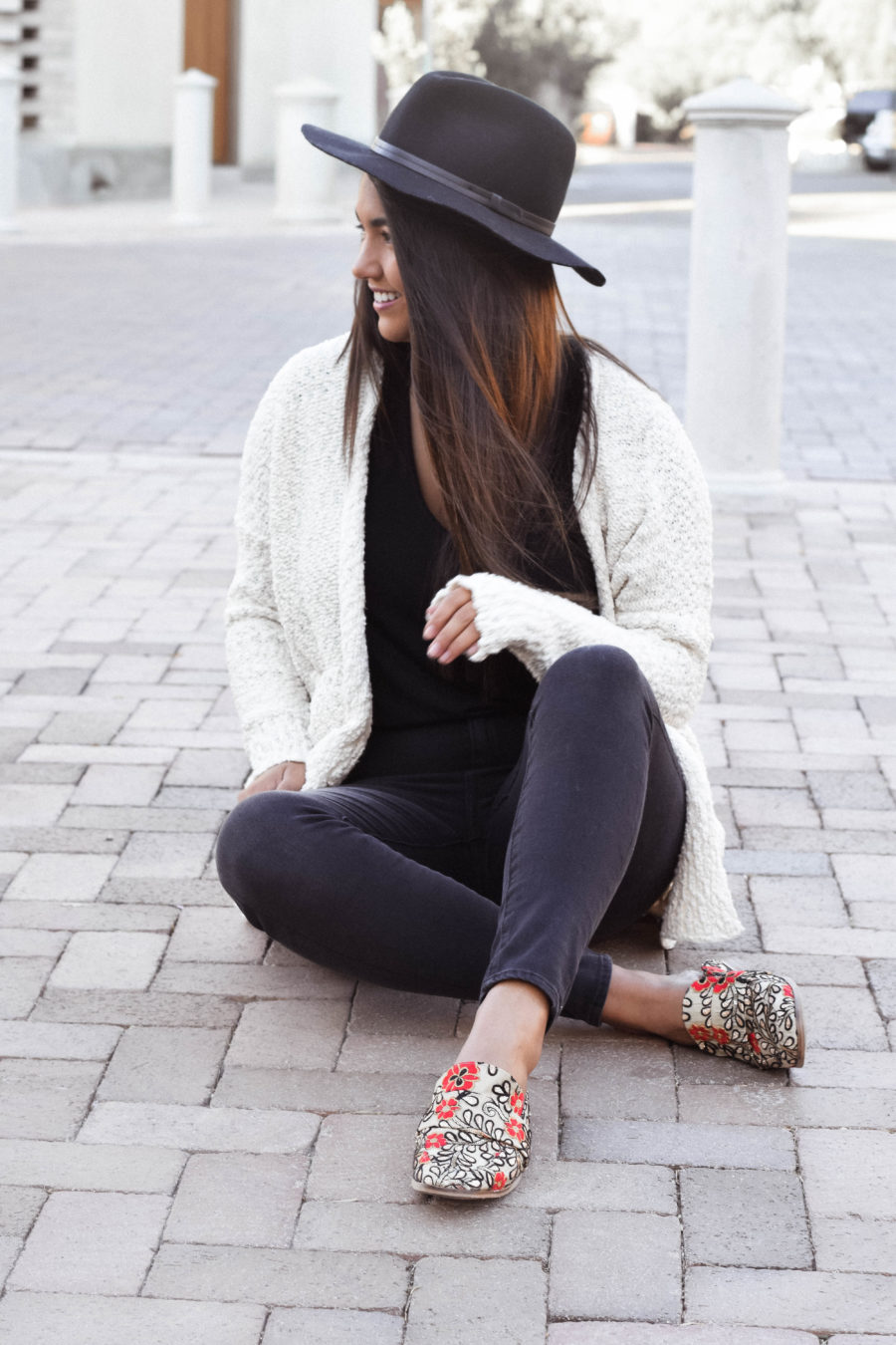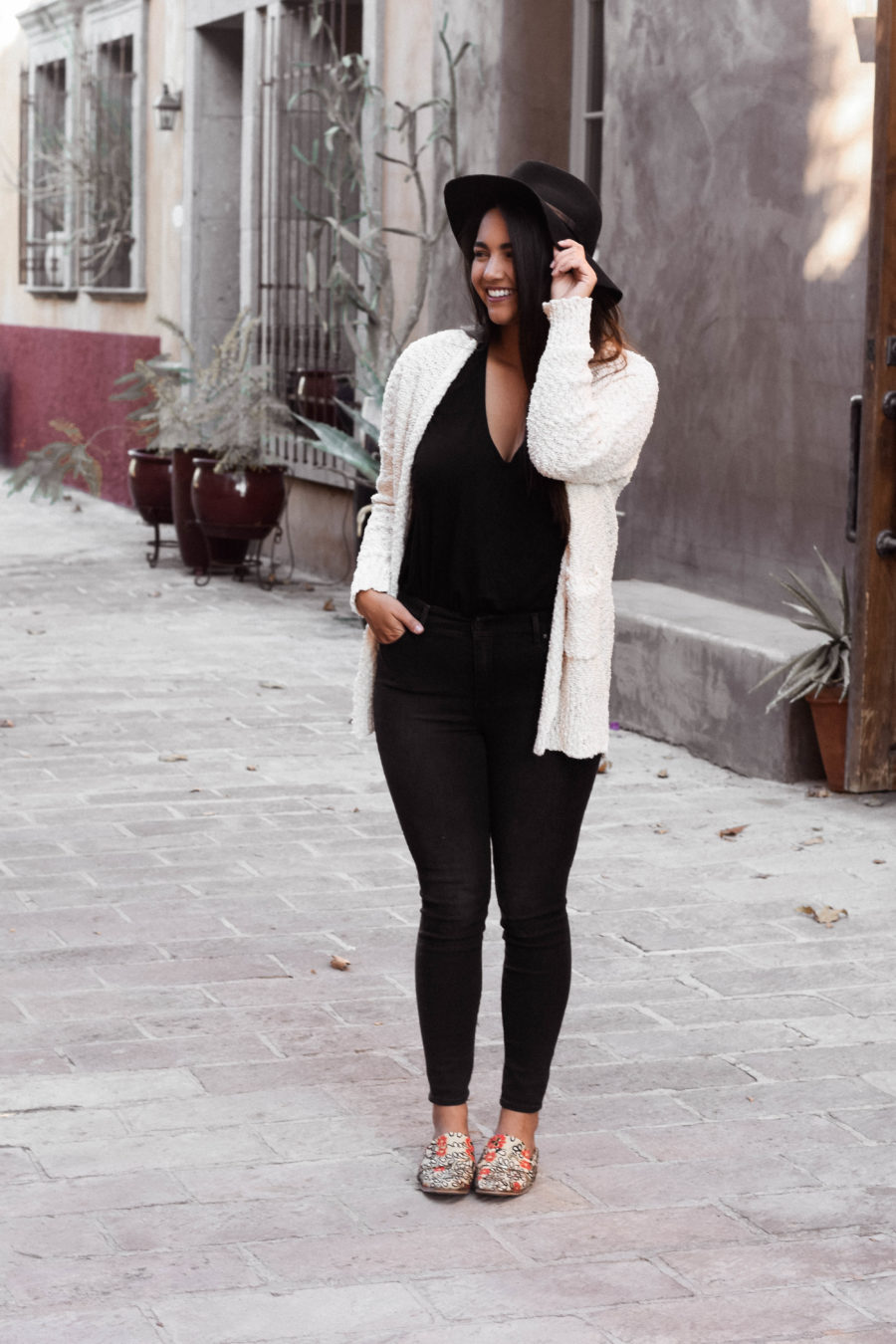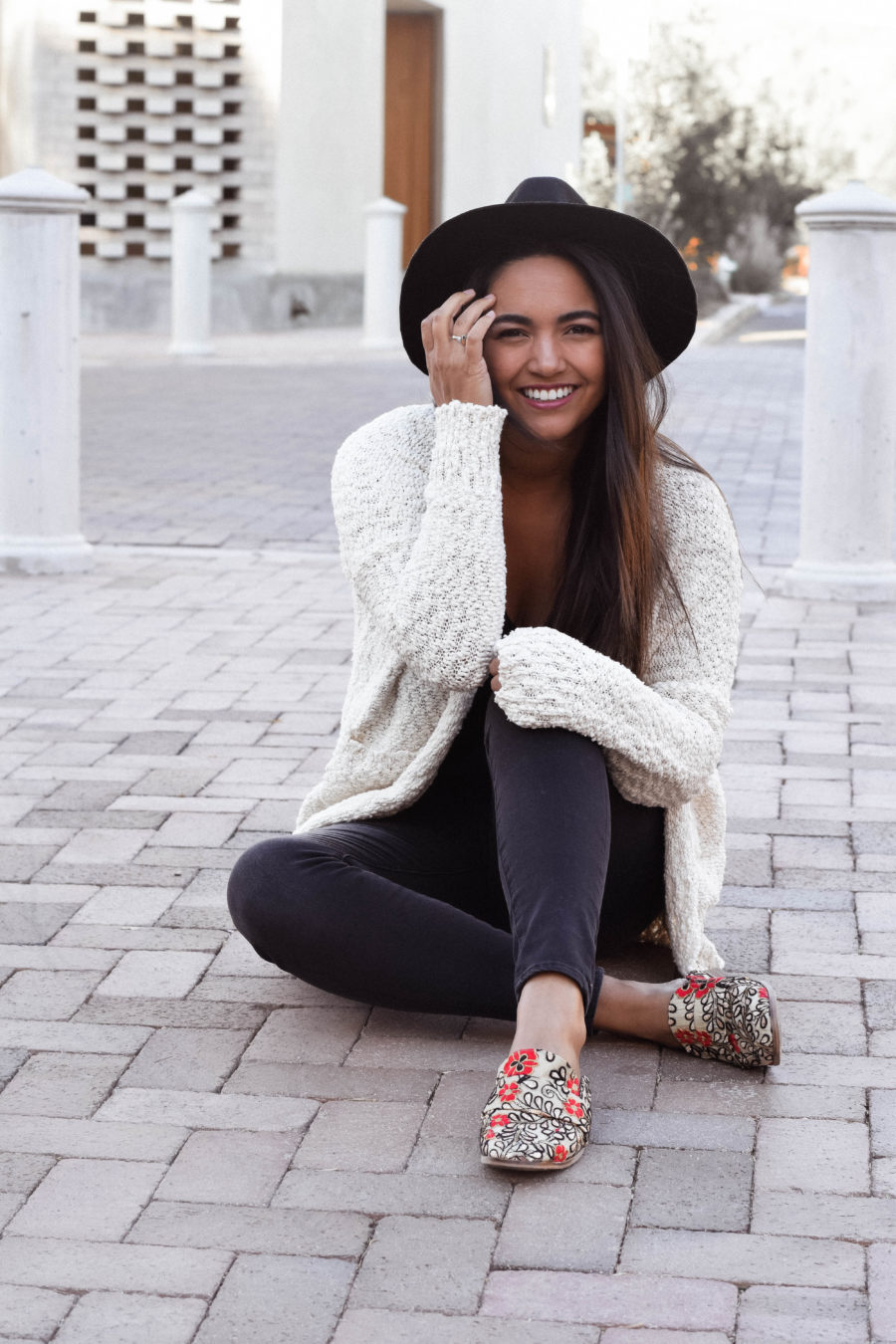 I aimed to build this outfit around these gorgeous statement shoes, so the black outfit and cream sweater seemed perfect. Next time, I may switch up the black jeans for my new favorite pair of Levi’s (seen in this post), but otherwise, this outfit still turned out pretty dang cute.