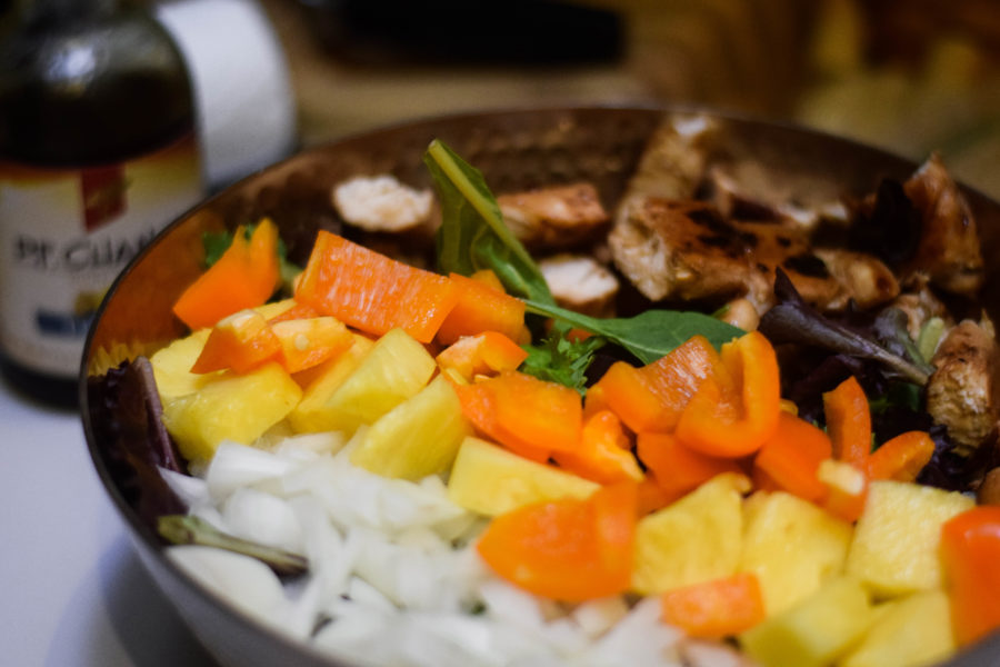 I loved the addition of bell pepper to this salad! It definitely adds a unique flavor. For a little extra added flavor, you could grill the bell pepper, onion, and pineapple (if you made the kabobs, just take them off the skewer and serve on a bed of lettuce)!