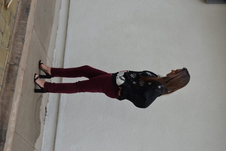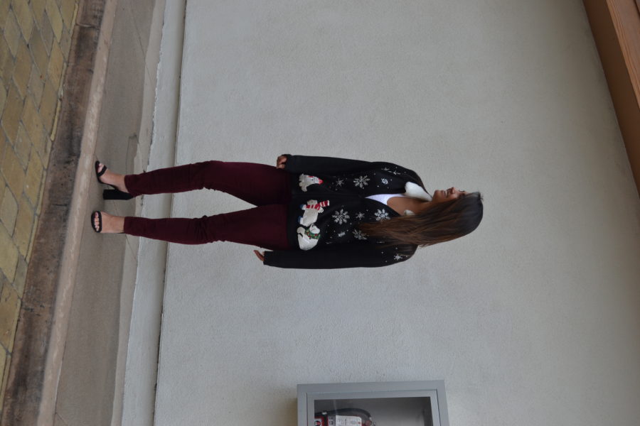 Holiday sweaters are one of my favorite things about the holidays! I am also obsessed with those shoes – I love that they have the single strap in front but a chunkier heel for easier walking 🙂