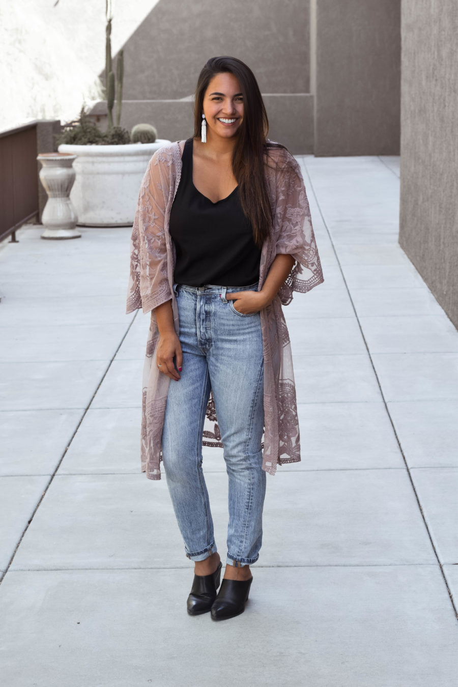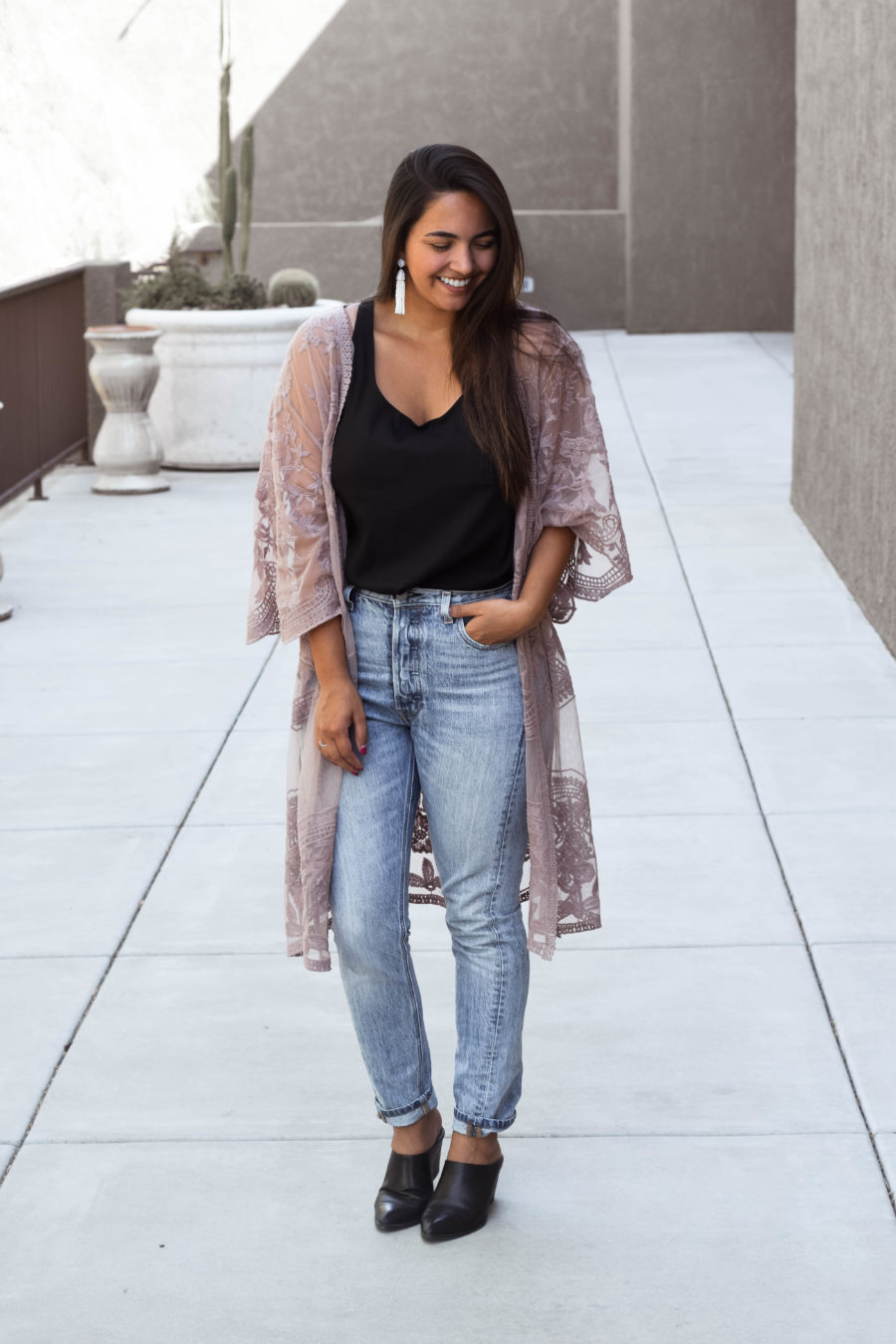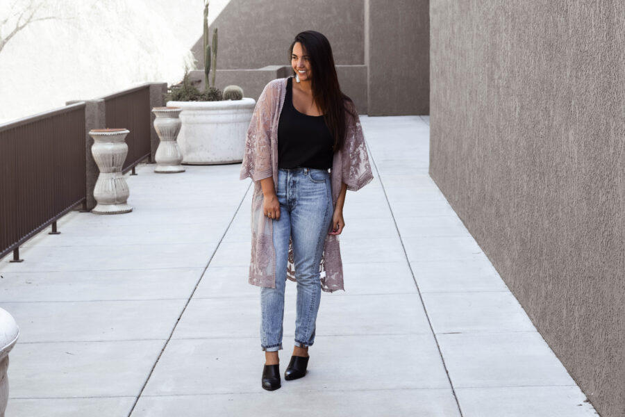As I said, I wore this outfit out and about on Friday and received endless compliments. I did some errands running around town and so many people stopped me to compliment this lace kimono. It’s easy to see why. This kimono is perfect for the Arizona fall weather. It has just enough fall vibes without being a too-heavy cardigan in the hot weather.