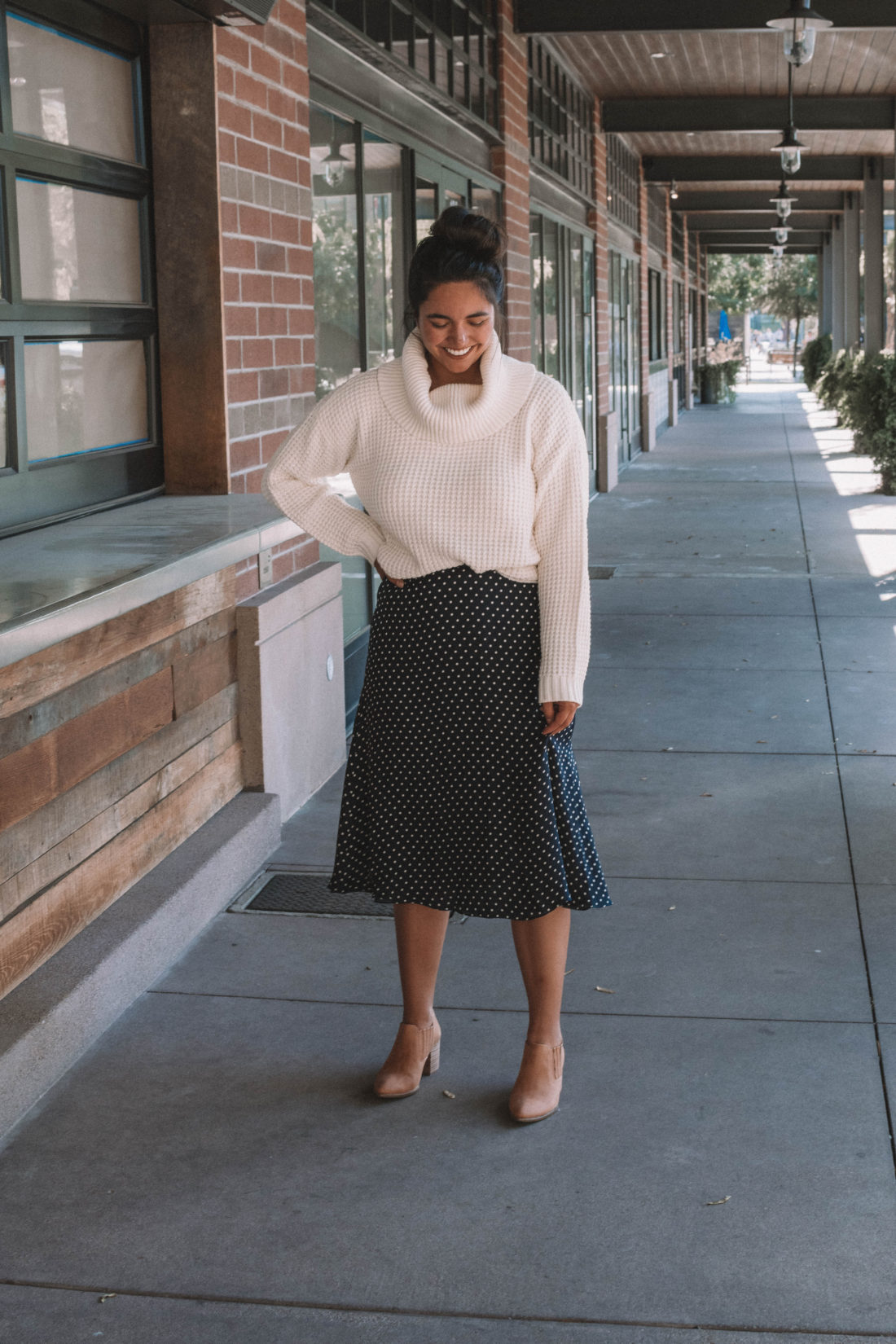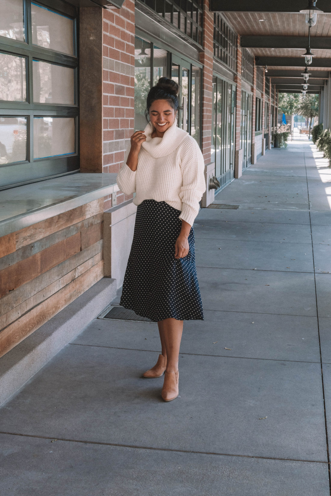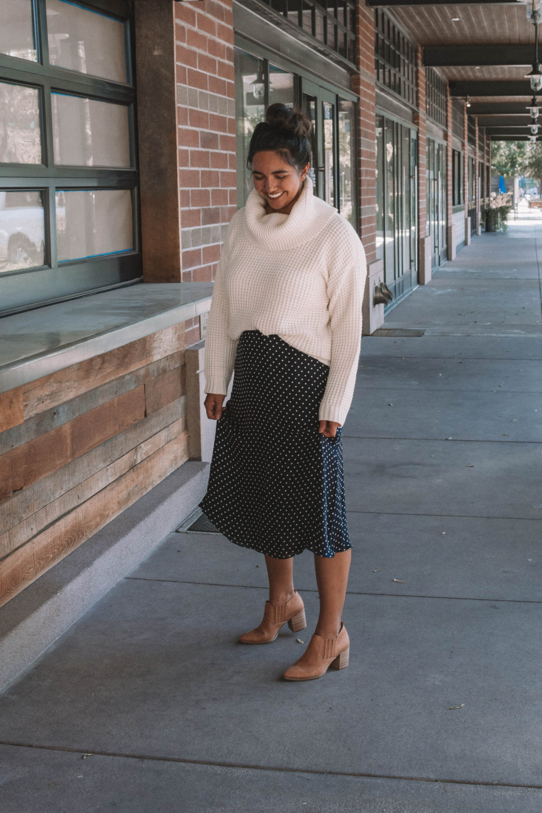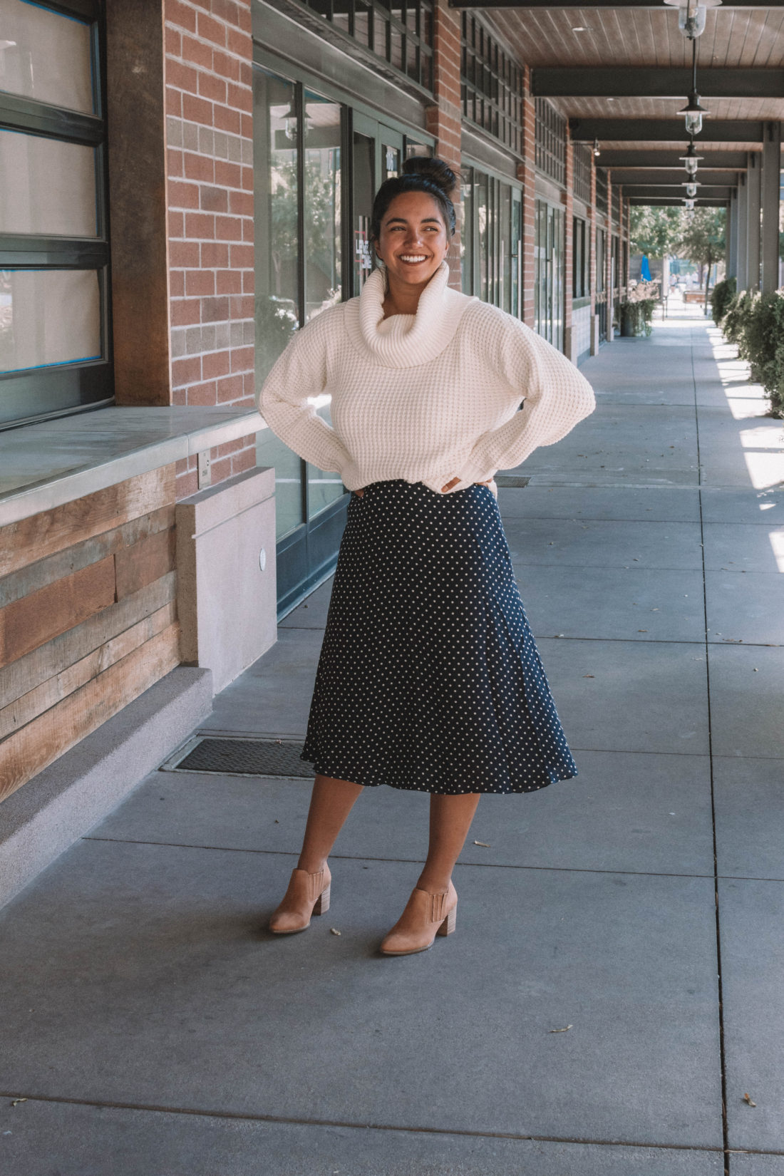 Modcloth sent me this unbelievably soft sweater and these cute fall booties and I knew immediately that they would be on repeat this fall. Instead of pairing them with my usual high waisted jeans, I opted for a vintage silk polka dot skirt. As soon as I put on the outfit – I fell in love.