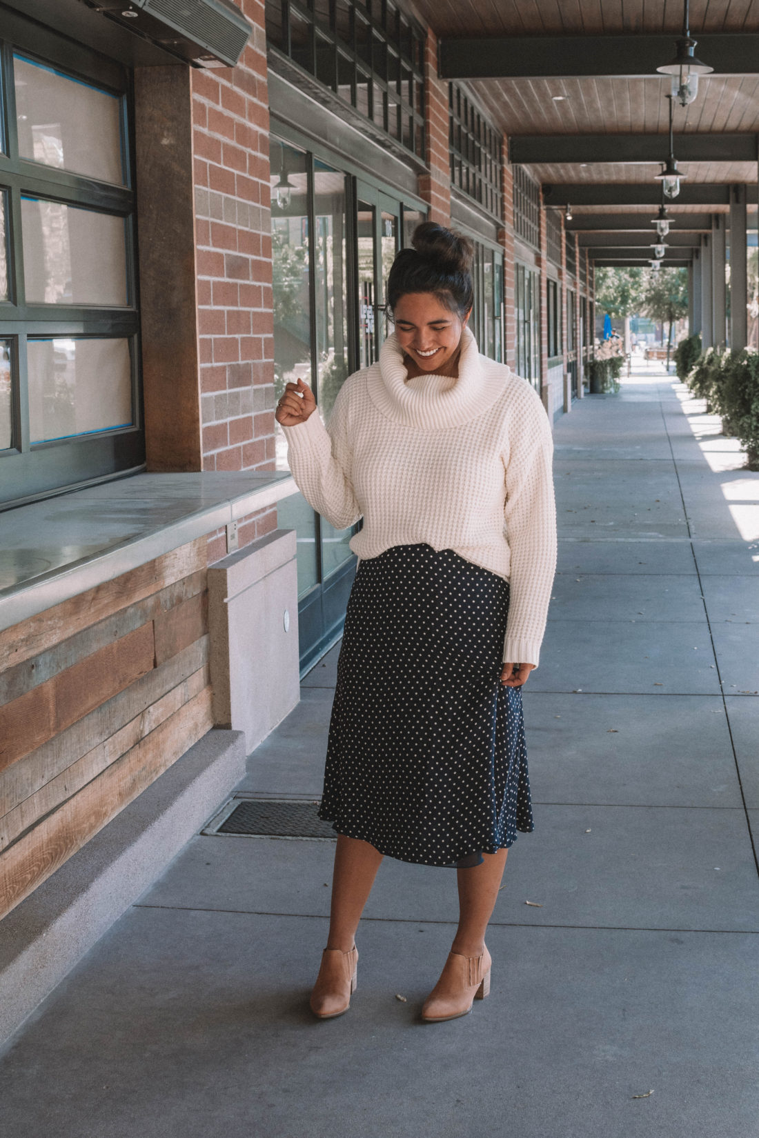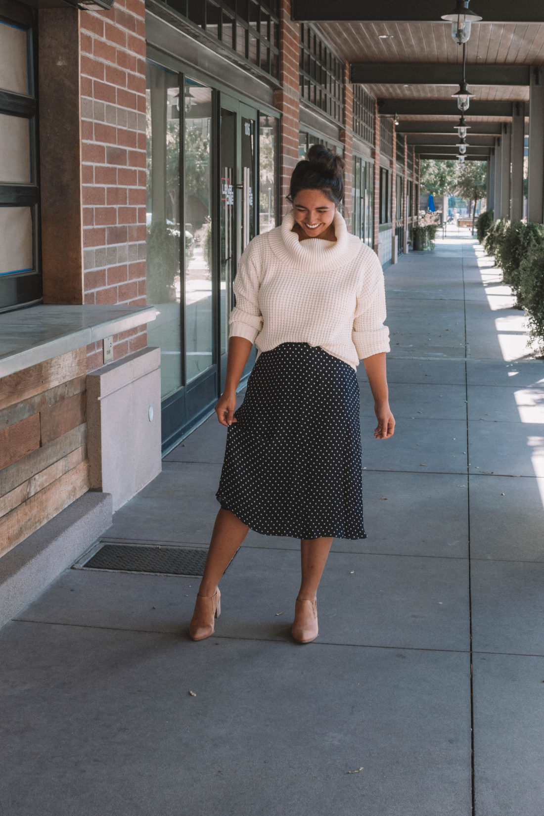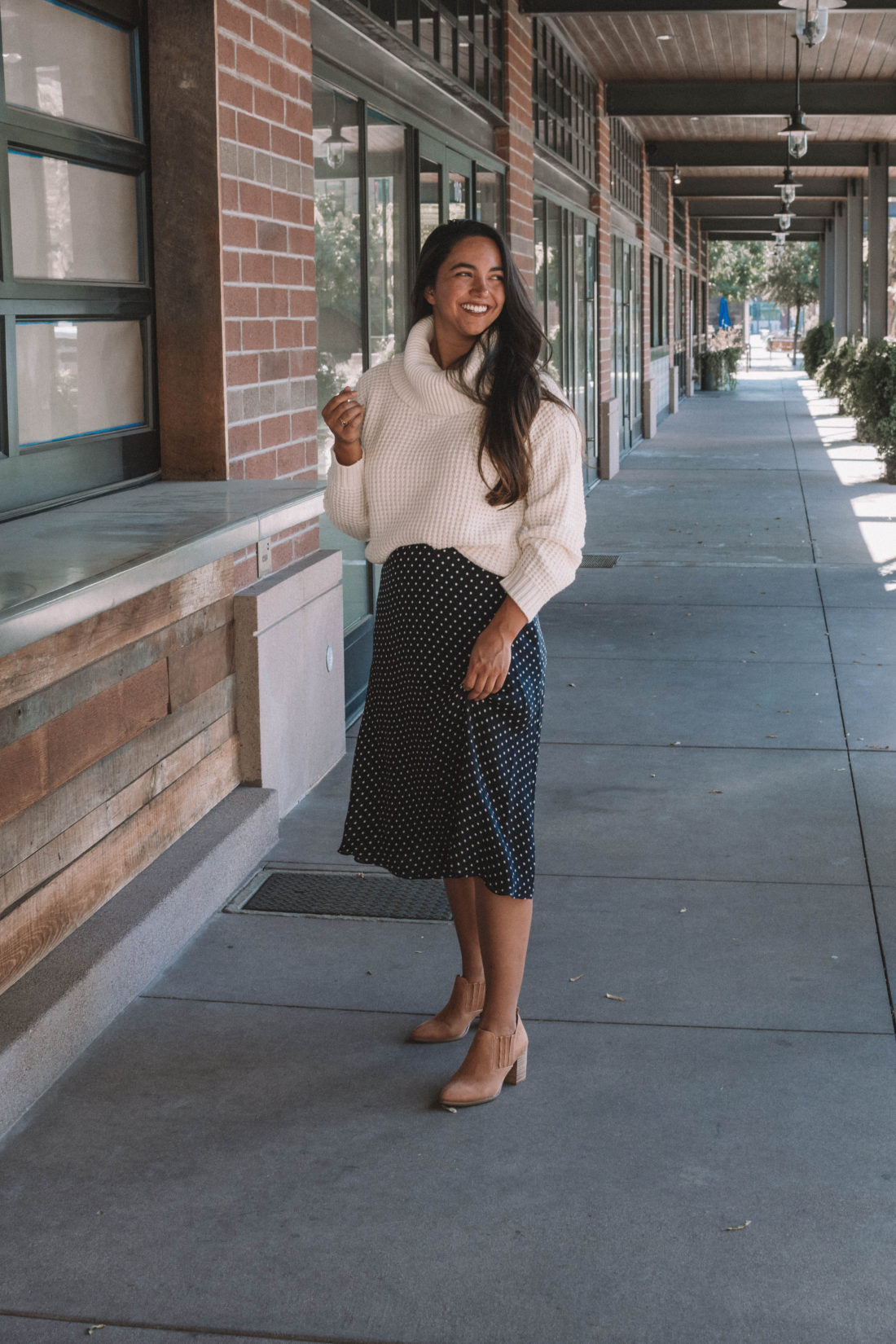Modcloth sent me this unbelievably soft sweater and these cute fall booties and I knew immediately that they would be on repeat this fall. Instead of pairing them with my usual high waisted jeans, I opted for a vintage silk polka dot skirt. As soon as I put on the outfit – I fell in love.