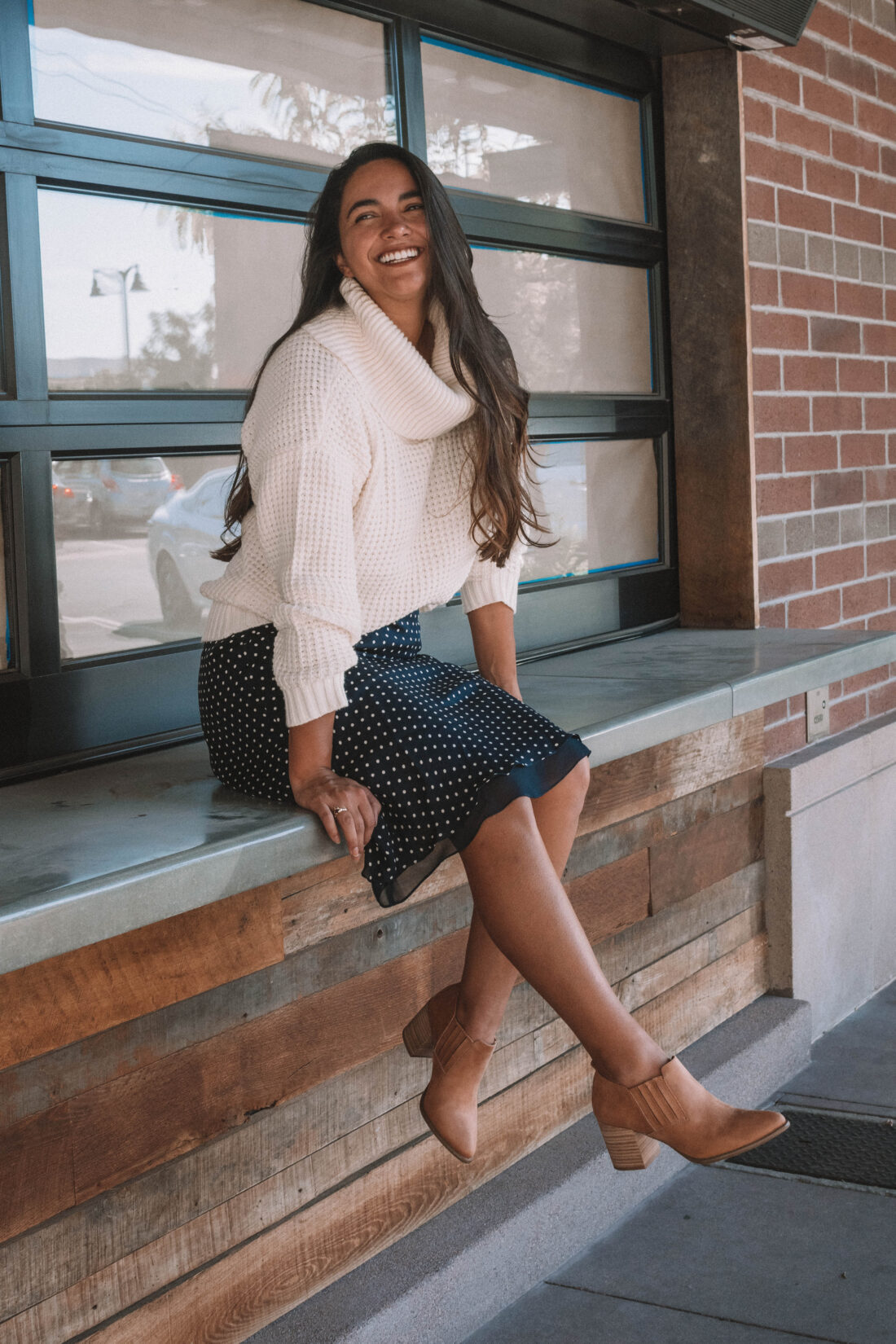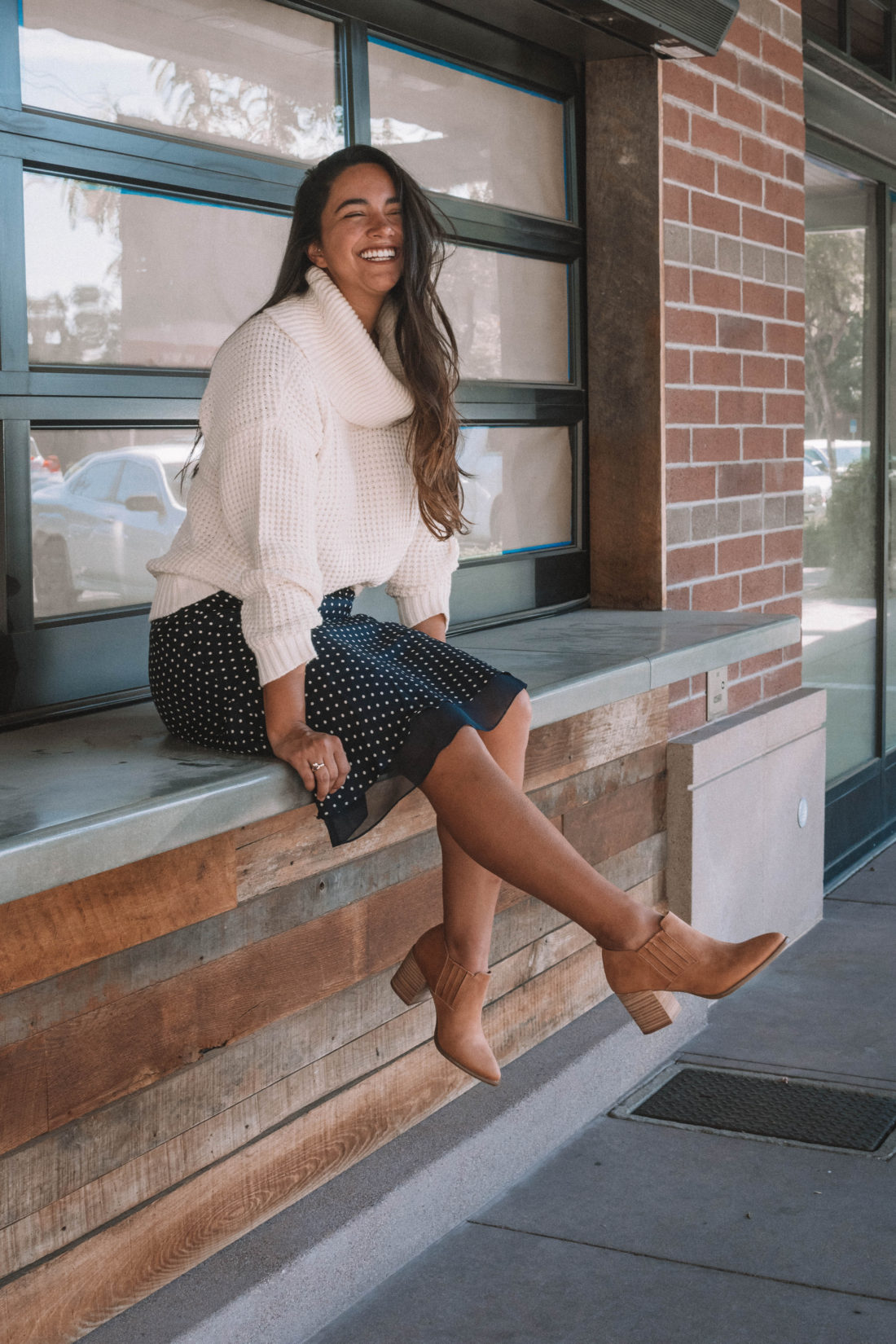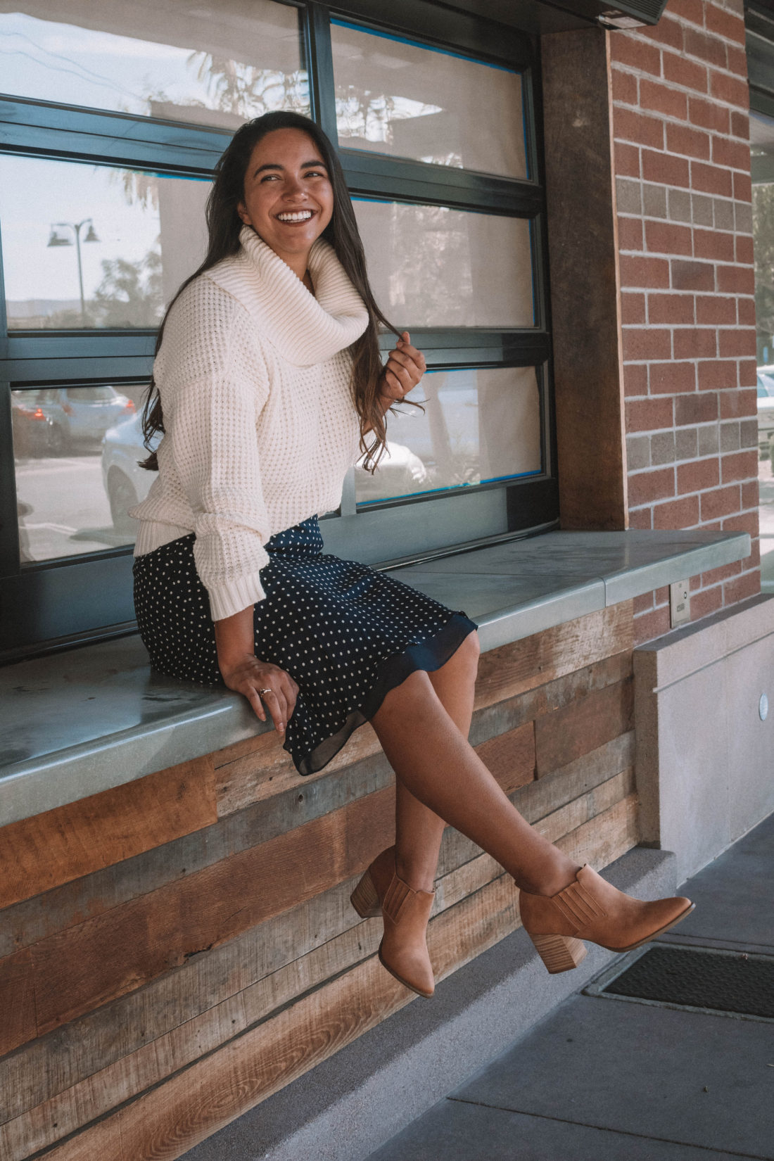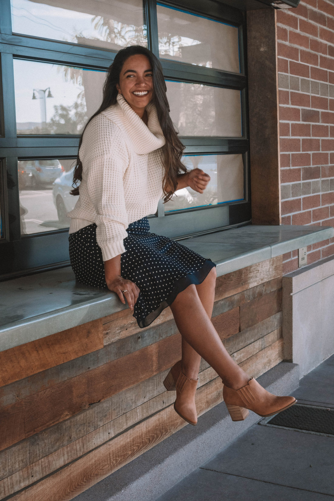 Modcloth sent me this unbelievably soft sweater and these cute fall booties and I knew immediately that they would be on repeat this fall. Instead of pairing them with my usual high waisted jeans, I opted for a vintage silk polka dot skirt. As soon as I put on the outfit – I fell in love.