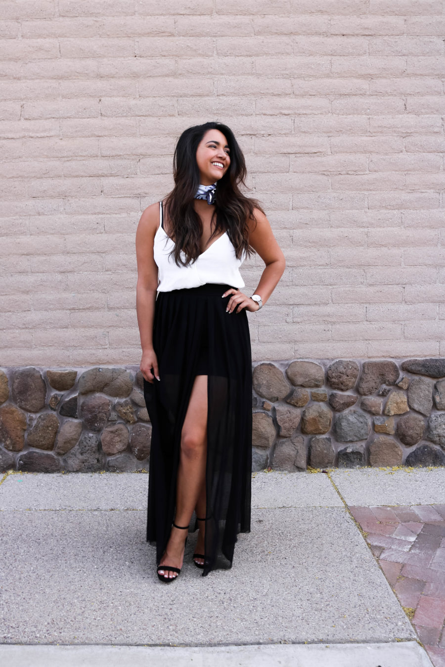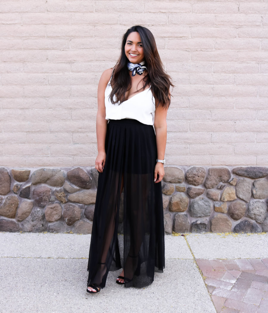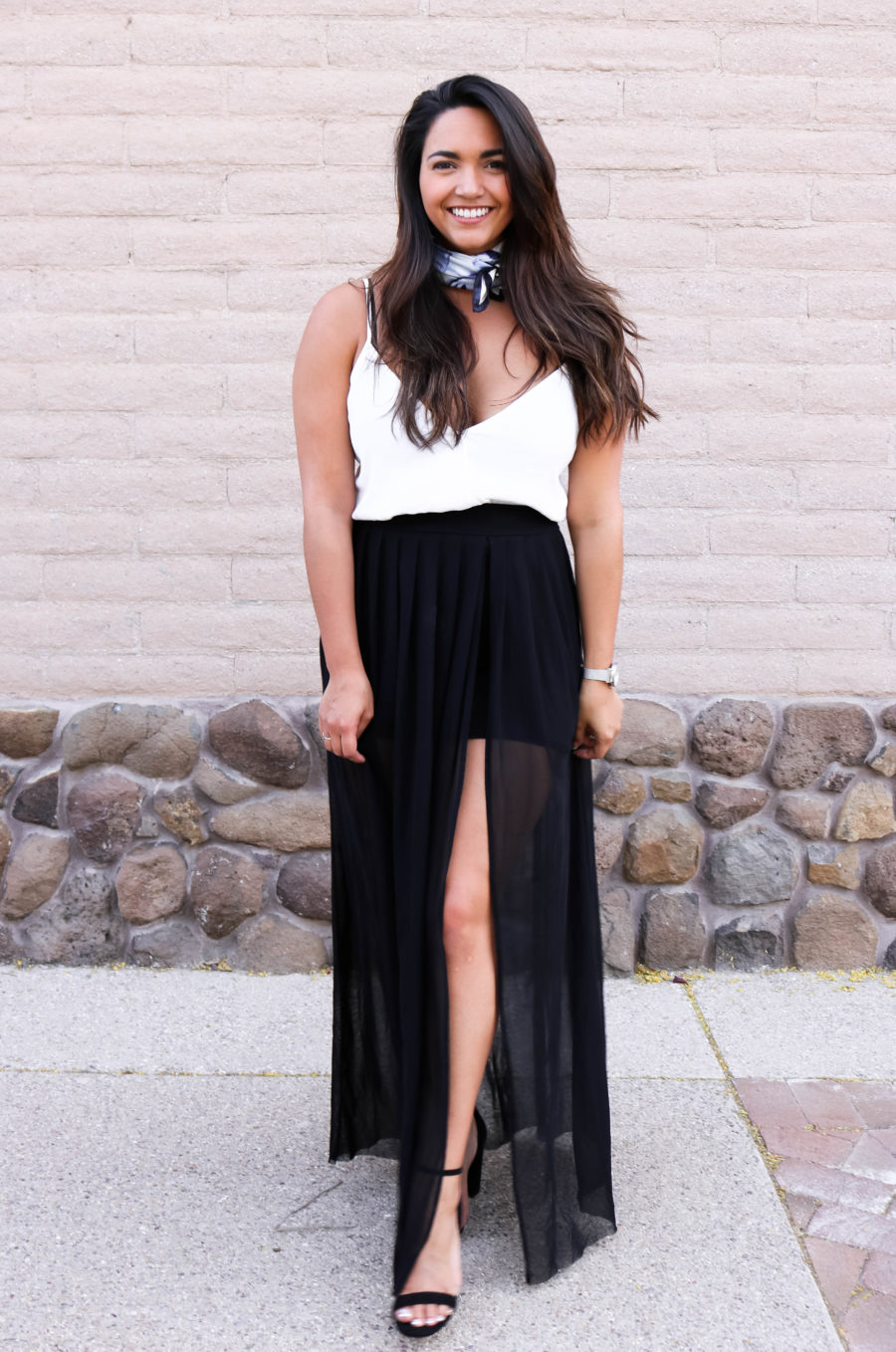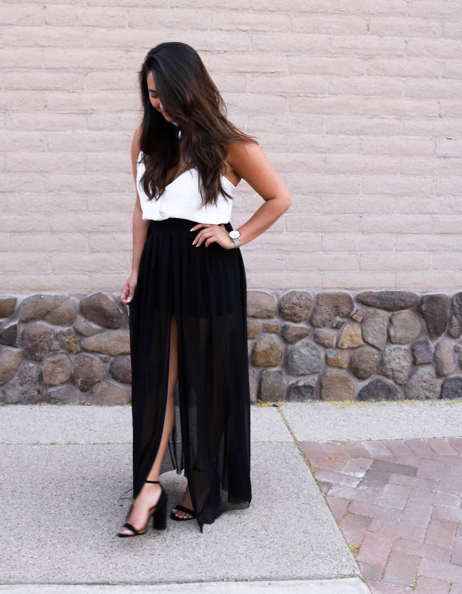 Maxi skirts are fun, especially sheer maxi skirts. I wore this skirt before for a fall outfit and it’s back again for this summer date outfit. At least, that’s what I would wear this for. If you feel inspired, you could wear this outfit any time you want. It’s a little dressy, but I would totally wear this to a nice dinner in the summer or honestly just strutting down the street on a feelin-good kinda day.
