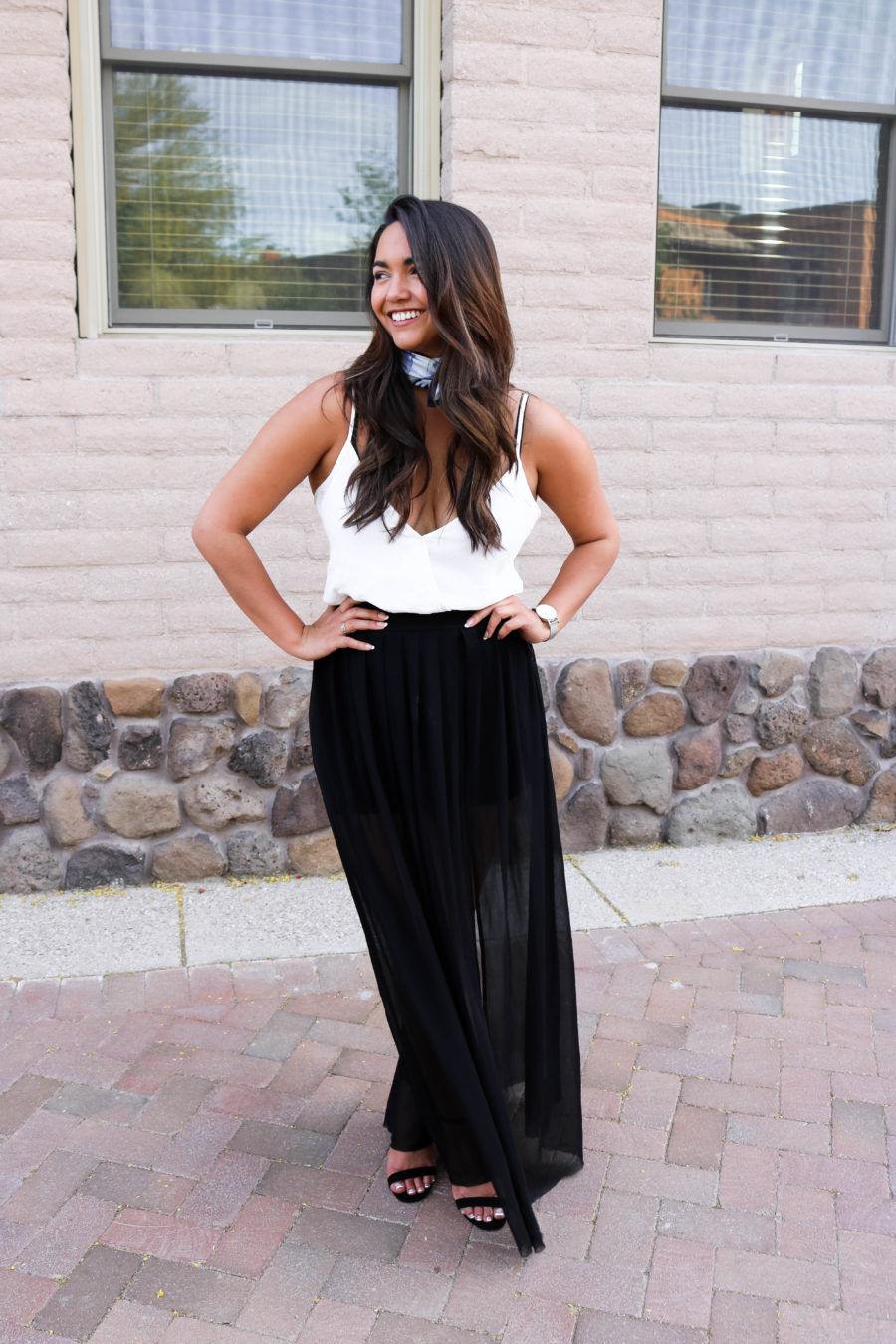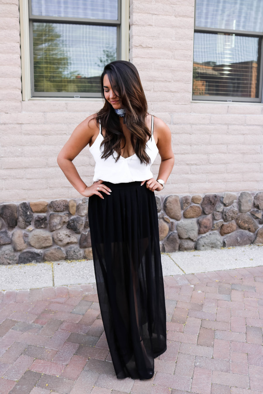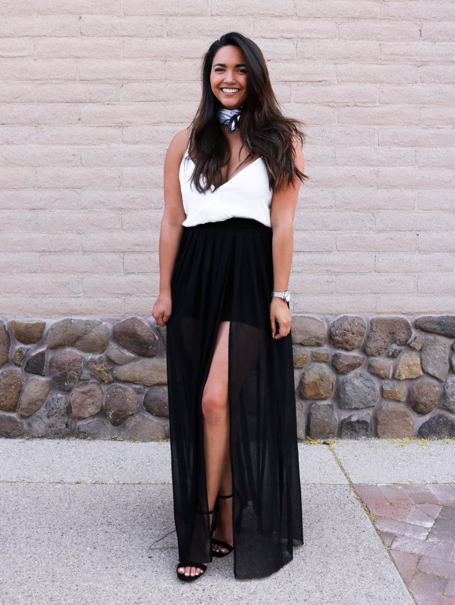 Maxi skirts are fun, especially sheer maxi skirts. I wore this skirt before for a fall outfit and it’s back again for this summer date outfit. At least, that’s what I would wear this for. If you feel inspired, you could wear this outfit any time you want. It’s a little dressy, but I would totally wear this to a nice dinner in the summer or honestly just strutting down the street on a feelin-good kinda day.