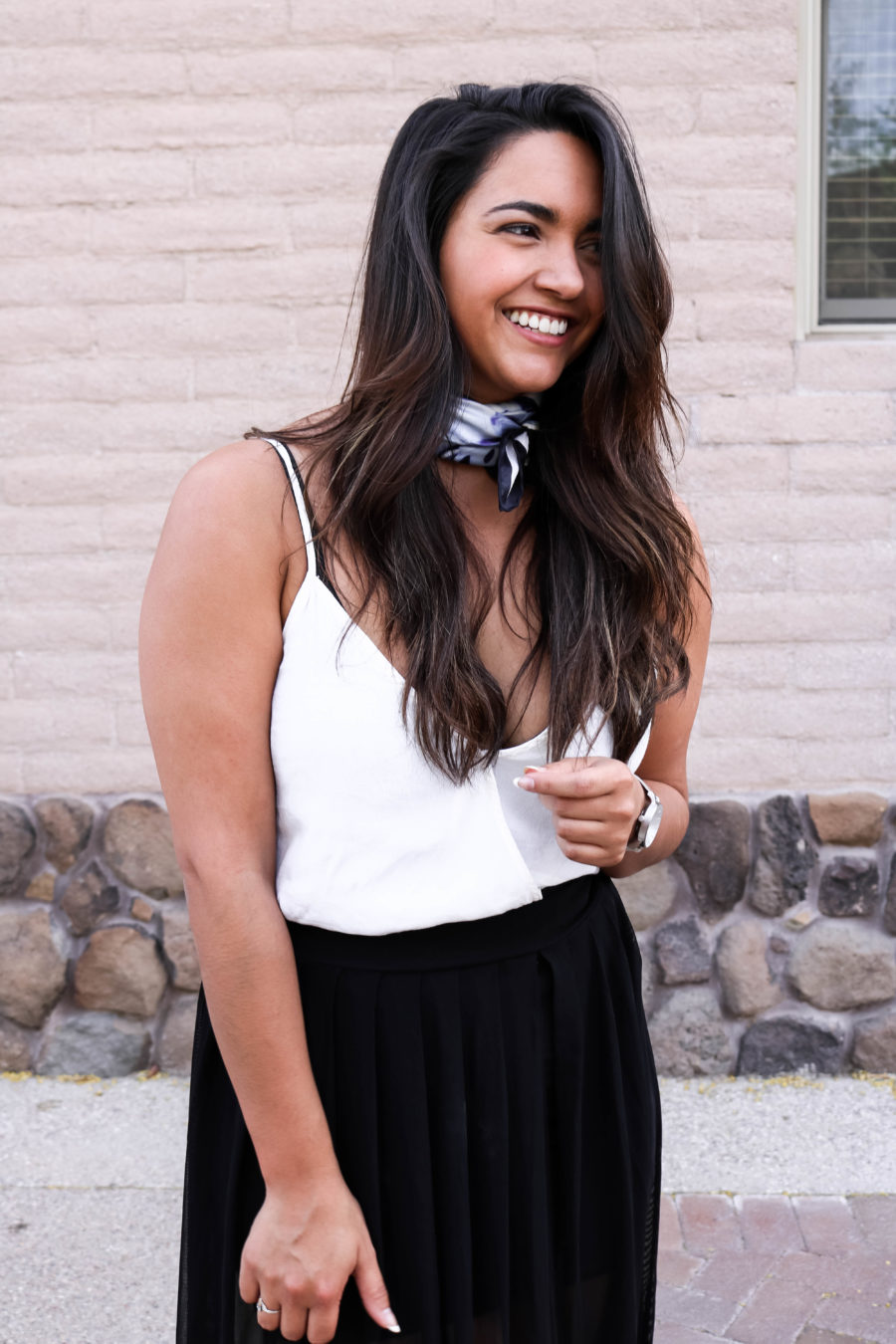 Such a cute maxi skirt! Love the silk scarf too- it’s so chic looking!