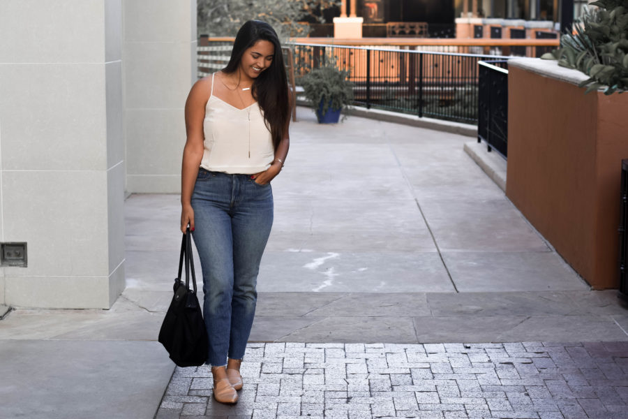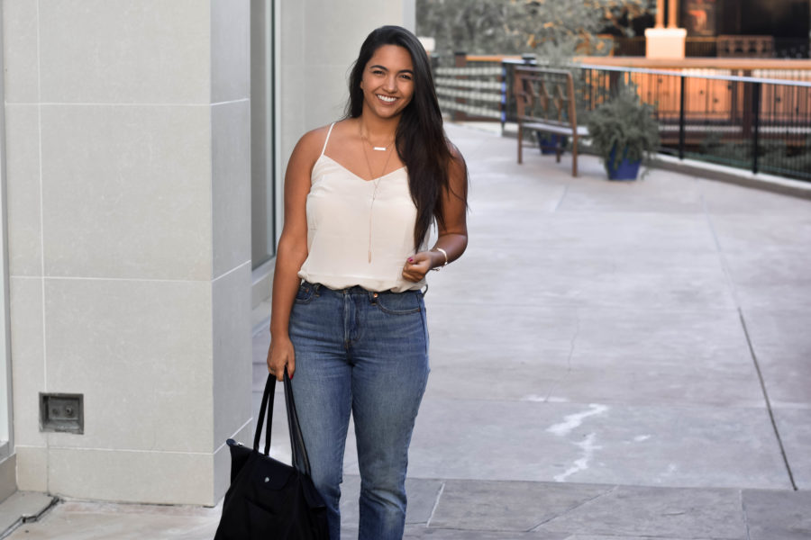 My tank top is a simple tank top from Lilly Pulizter – which I know, is totally not my usual style. I didn’t plan on getting anything from the After-Party sale, but when I found this silk tank top in two colors for just $30, I pulled the trigger. Just goes to show you that a brand you don’t typically shop at can totally surprise you.