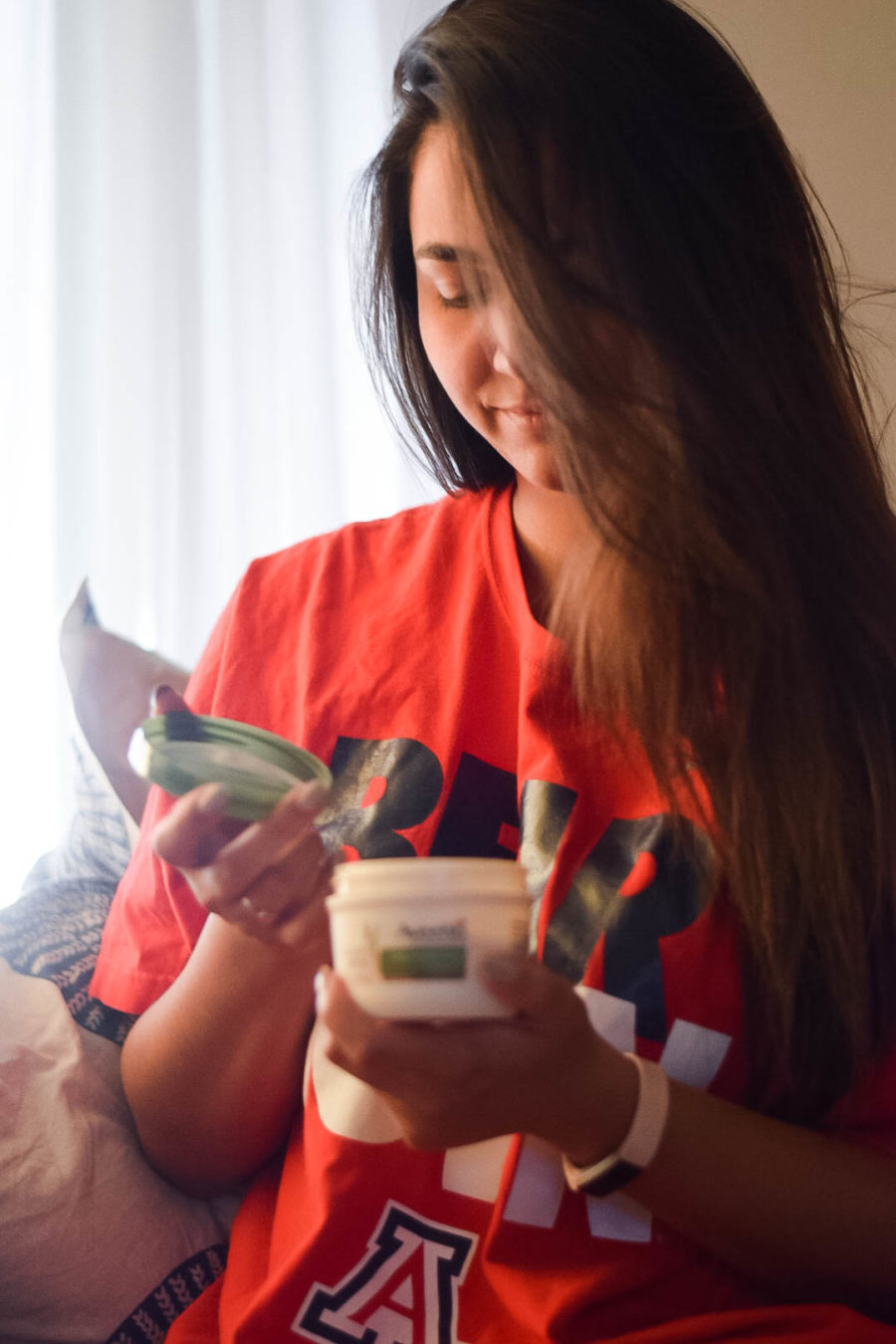 Lastly, I am totally not afraid of gettin’ greasy before bed. I lather on all the moisturizer I can so that way my skin feels so soft in the morning! It locks in all the moisture after a shower and prevents the dry Arizona air from sucking my skin dry!