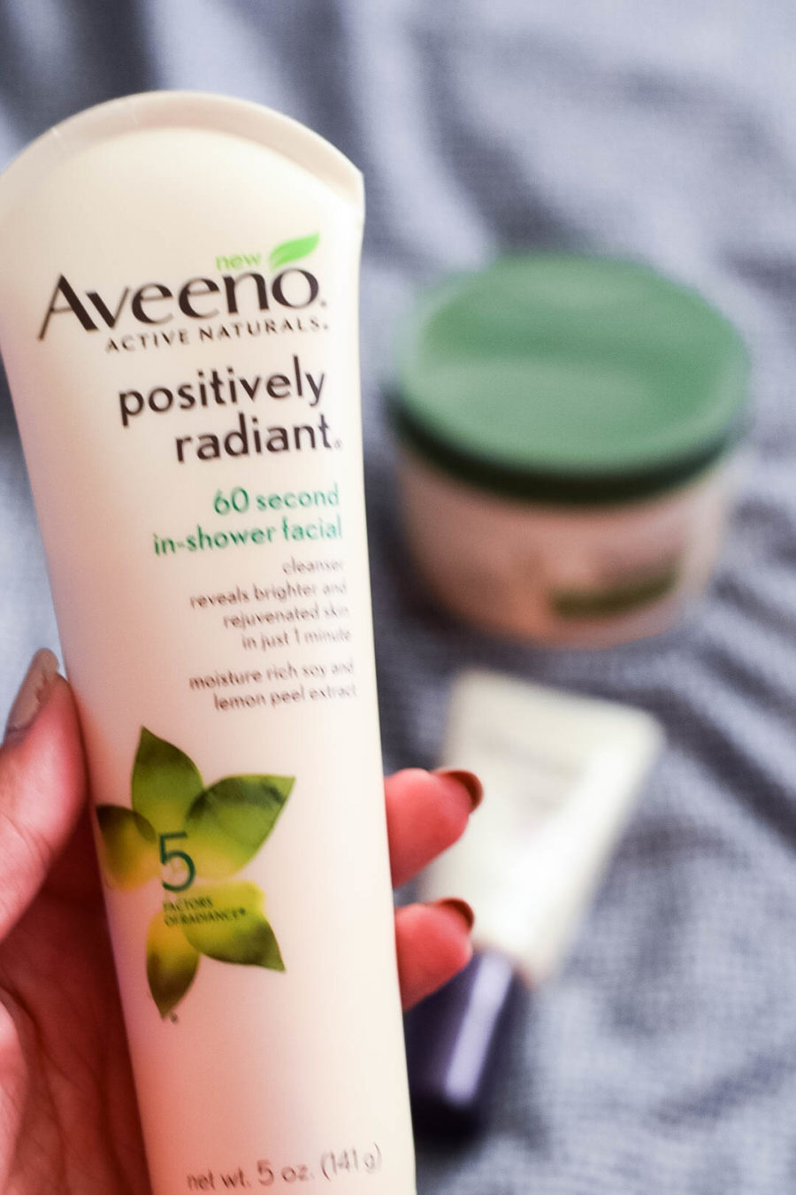 While I’m in the shower, I wind down with a simple 60-Second Facial courtesy of Aveeno. It leaves my skin feeling refreshed before I go to bed.