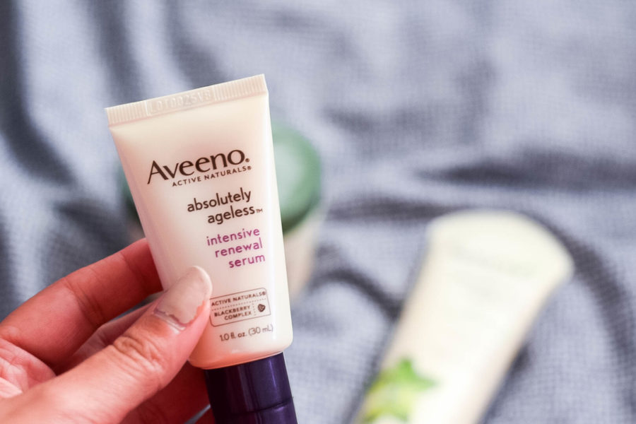 I’m currently using Aveeno’s Absolutely Ageless Intensive Renewal Serum.