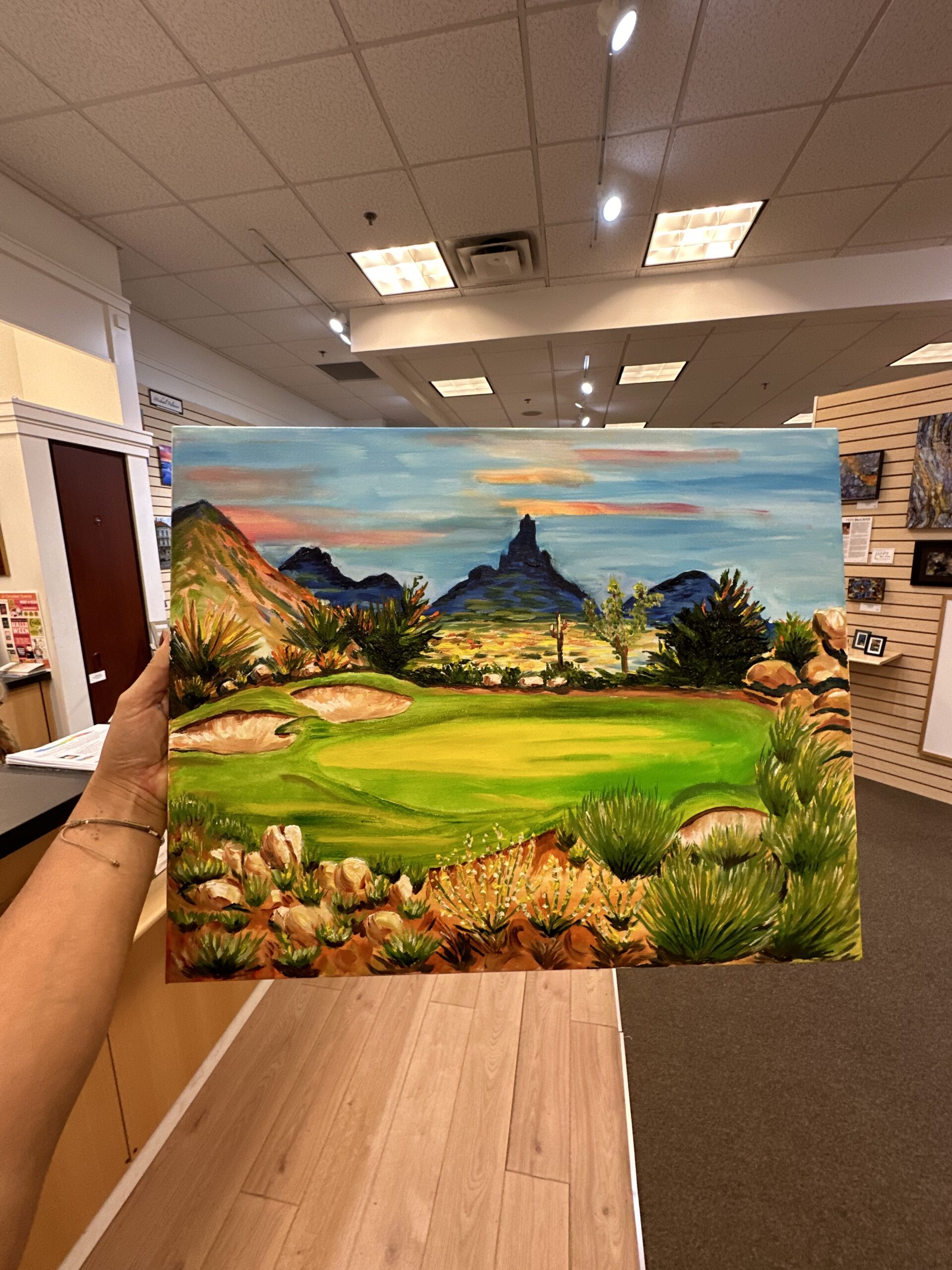 When I first got started, I looked up art classes in Denver and found this painting class focused on a golf course in Scottsdale. Having both a love for golf and an attachment to Scottsdale, I signed up immediately. The art class was at ROX Art Gallery, which was a bit far from me (about a 20-minute drive) but I stumbled onto a real gem in Littleton.