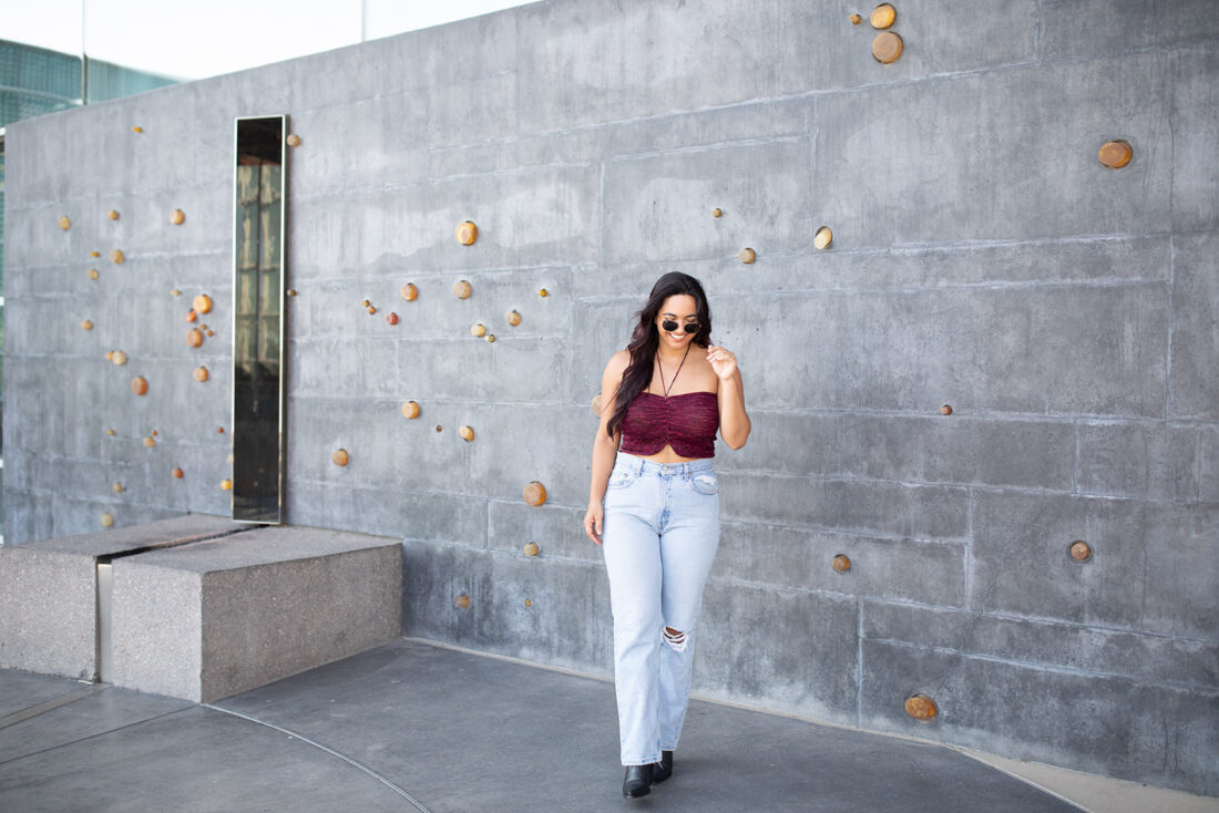 I styled this top with my favorite pair of denim shorts, a bracelet stack, a vintage belt, and my two favorite gold necklaces but I think this top would also look cute with a pair of wide leg jeans and platform sandals or a pair of straight leg jeans, booties, and a western style belt.
