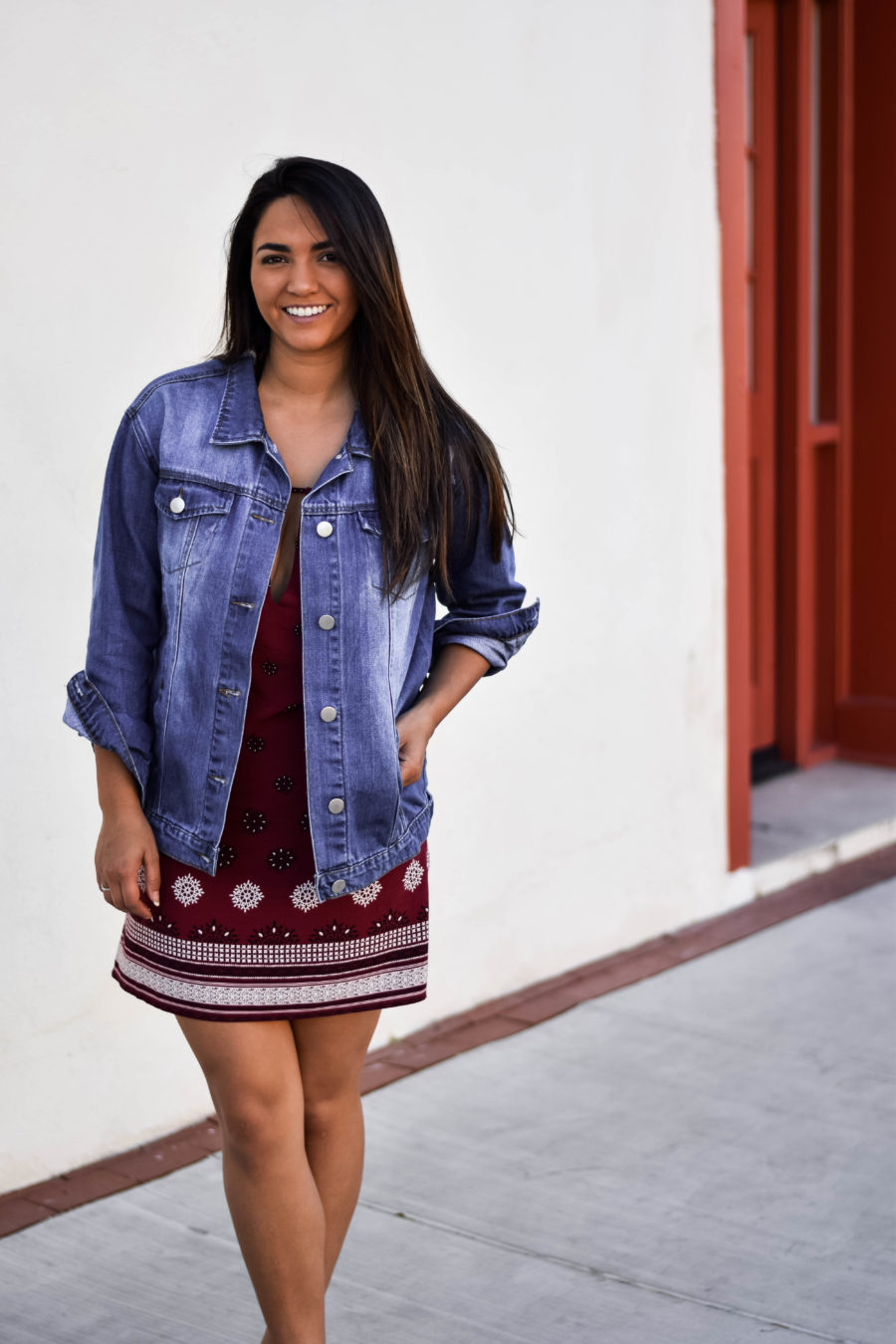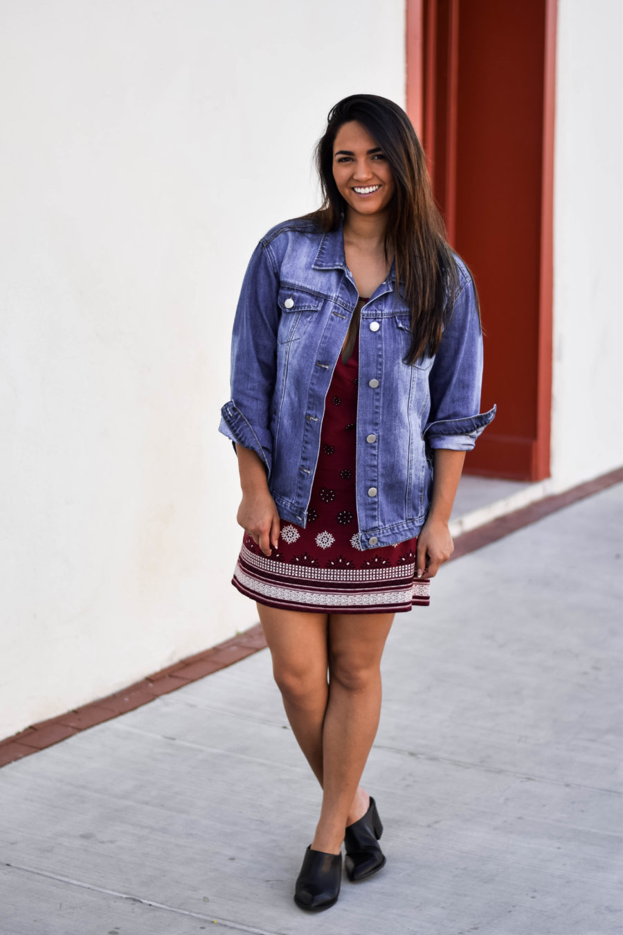 Basically, I matched a cute tribal-print sundress with my all time favorite denim jacket and mules. The tribal print dress is so cute and perfect for me, since it’s the perfect way to bring my favorite fall color into spring. I love the print along the bottom as well. The cutout in the front is a little risque, so it does involve checking every so often to make sure the girls are still in their assigned seats. The dress is from Tobi, and I am so excited to style my most recent haul from them!