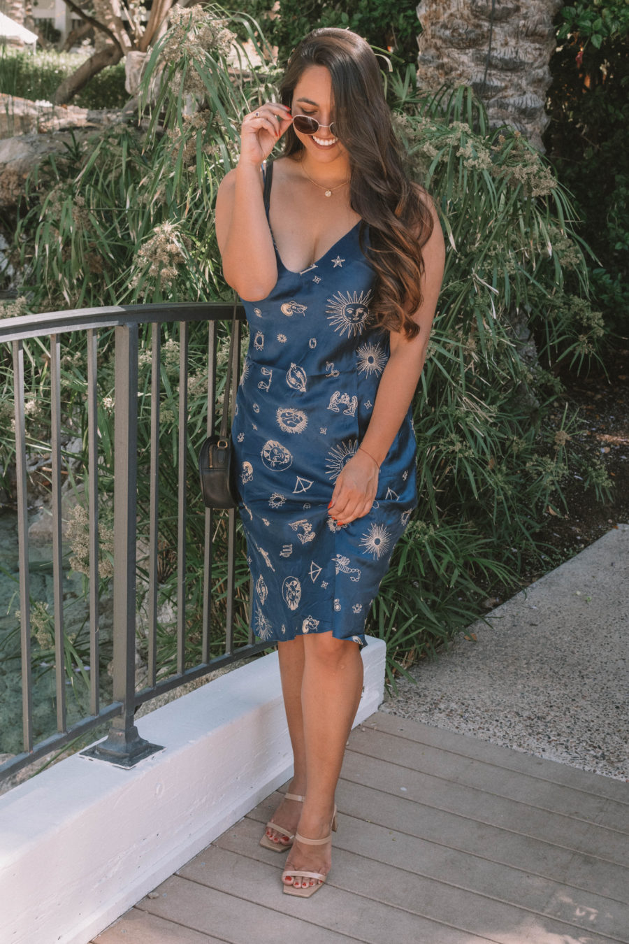 The website describes the dress as having a low v-neck and low back, which I was hesitant about as I really can’t wear my dresses without a bra. However, the straps on the dress are adjustable. If adjusted correctly, the dress fits like the perfect slip dress and can completely cover a strapless bra. I call that a win.
