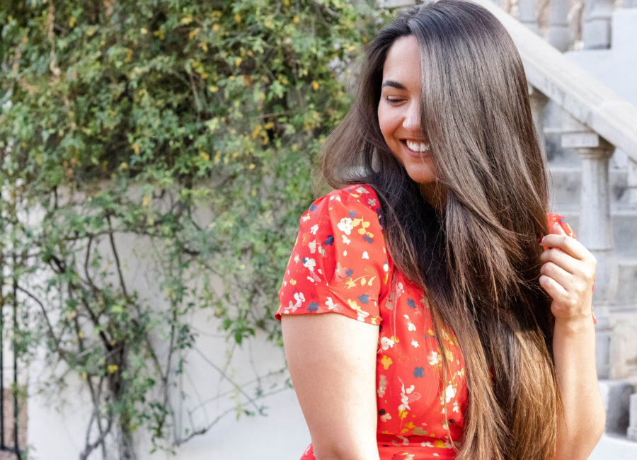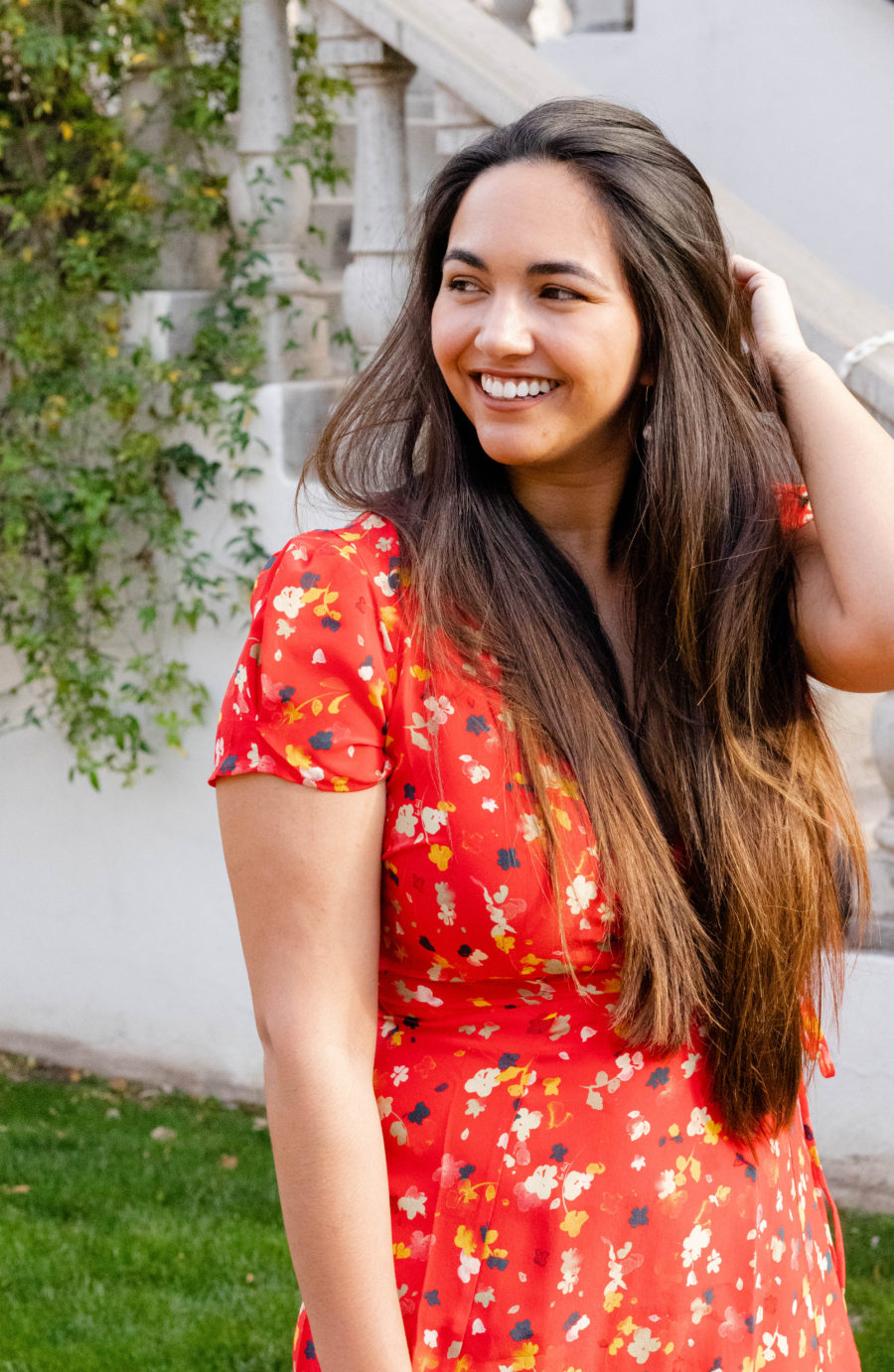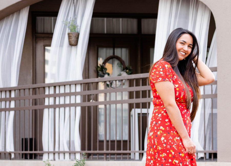 If you recognize the dress, you may have seen it on other bloggers or you may have seen the purple floral version worn by Selena Gomez. I’ve decided this dress officially looks good on anyone.