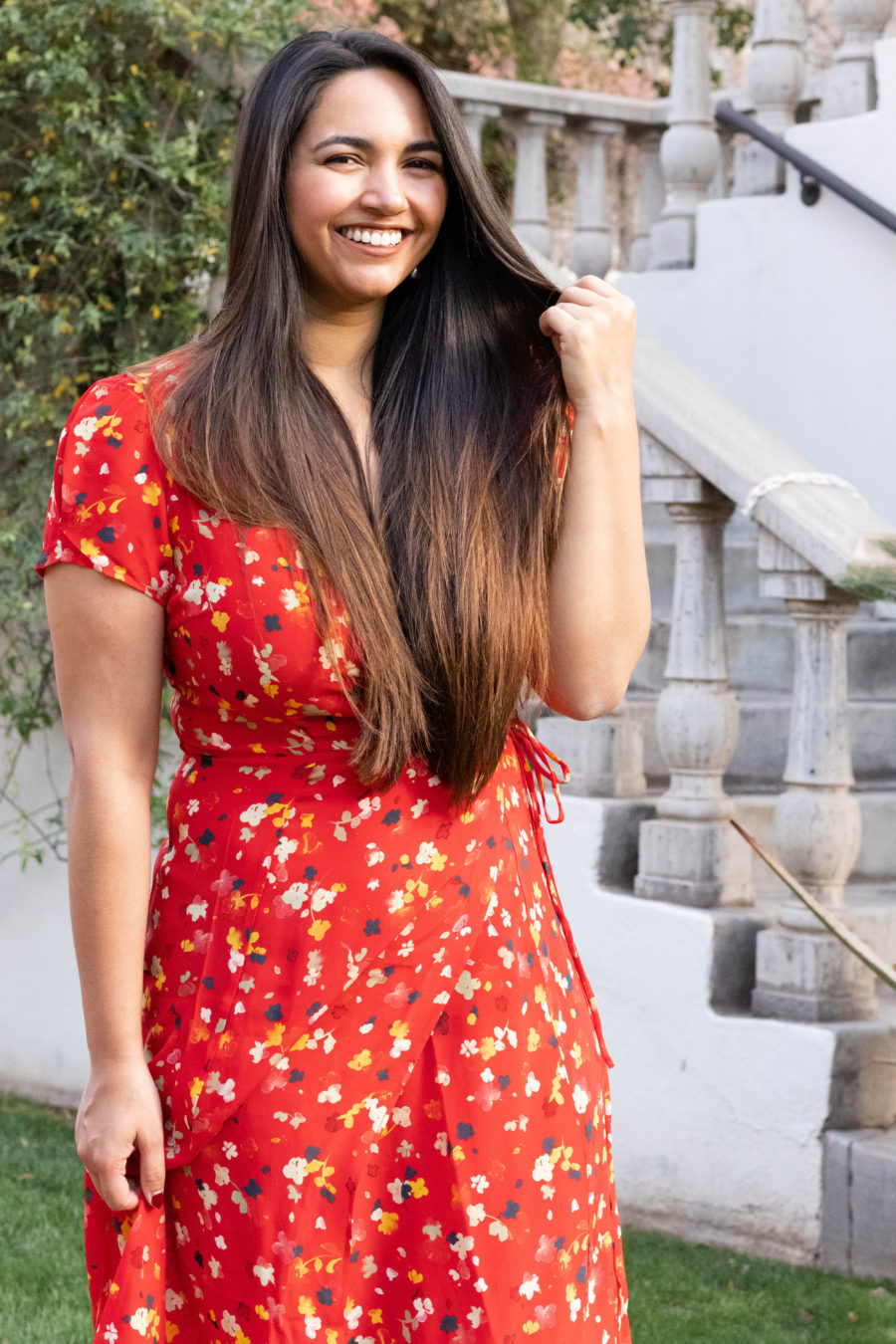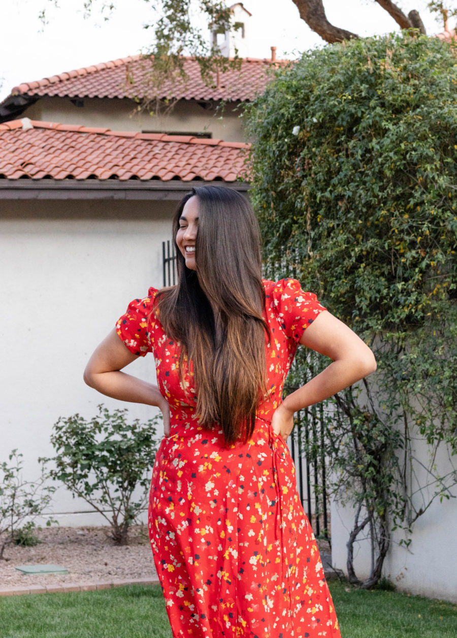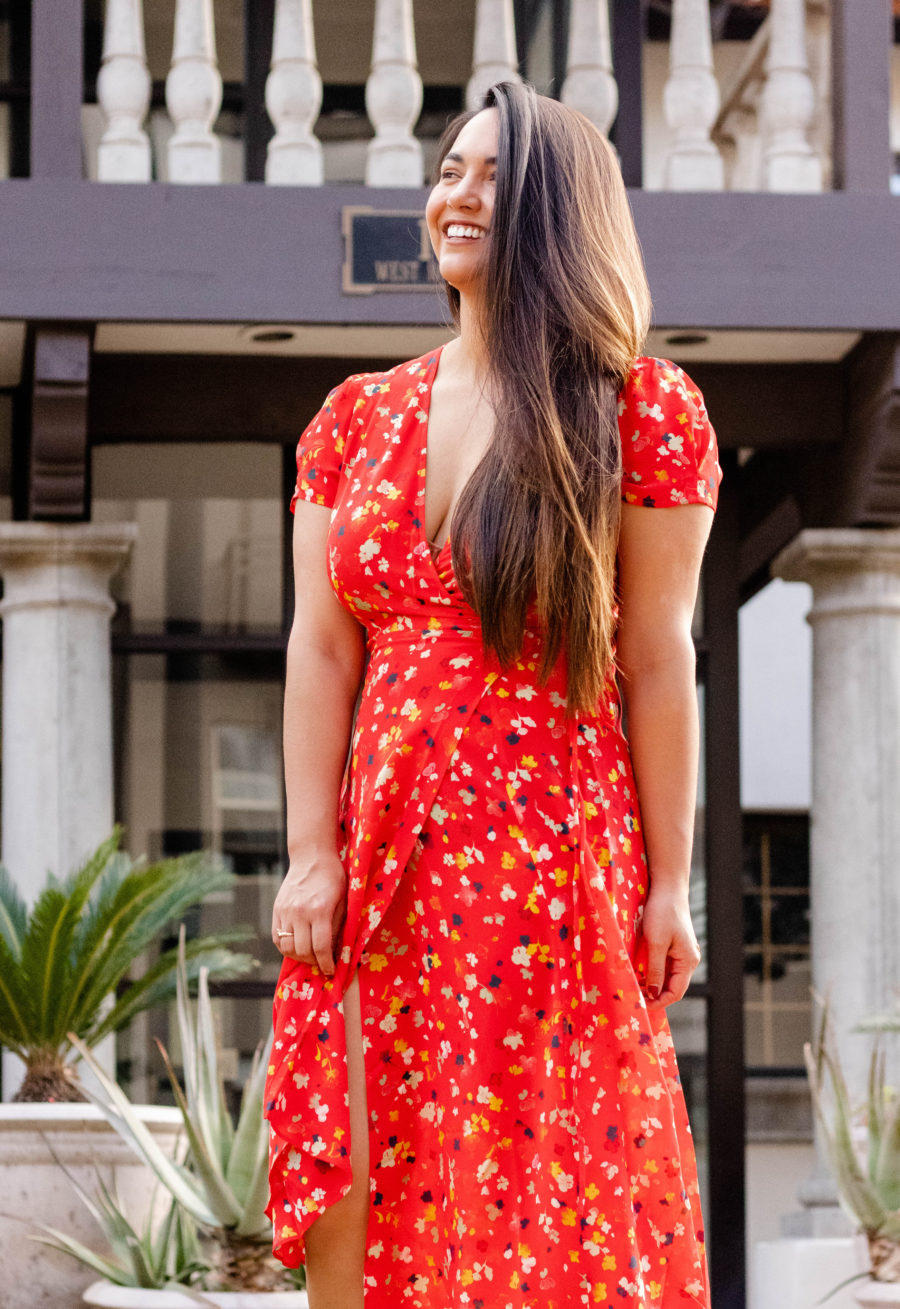 I chose the Teale dress for a few different reasons. I love wrap dresses and had been wanting to replace the red mini dresses I had in my closet. I wanted something that was still sexy, but something just a little longer. Somewhere in the last few years, I realized my dresses were shorter than I remembered and I felt like I needed something longer, that didn’t require constant worry about flashing my butt to passers-by.