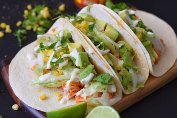 This recipe easy combines a twist of Latin flair with the traditional buffalo flavor – making it an instant hit at any party. You can even serve it as a salad if you want to forego the tortillas! My boyfriend and I enjoyed the tacos by the pool yesterday and will be enjoying the rest as leftovers as a salad today!