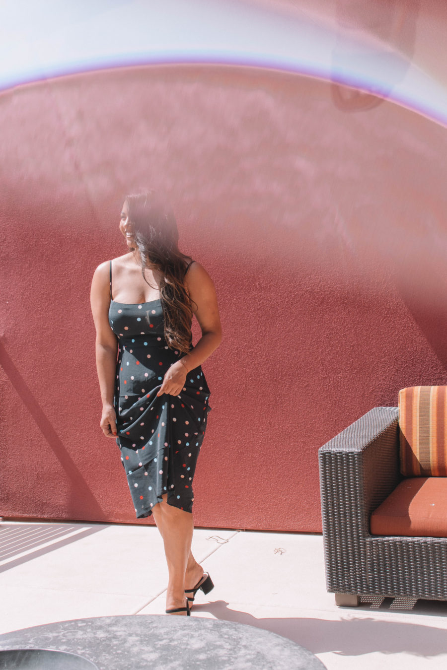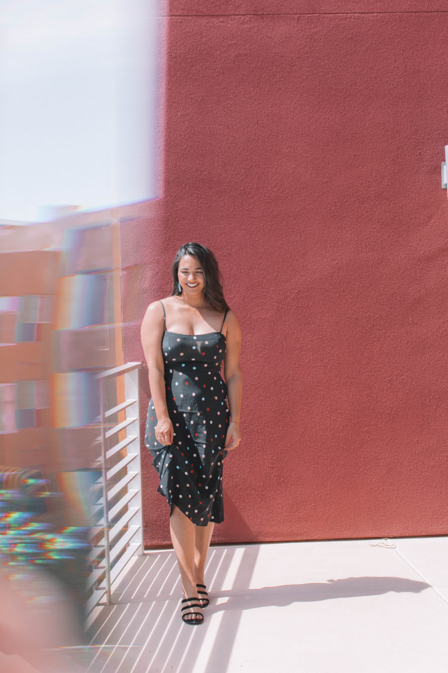 The colorful polka dots are really what drew me in, even though I also love the other two floral prints. This dress is the perfect mix of sexy and cute.