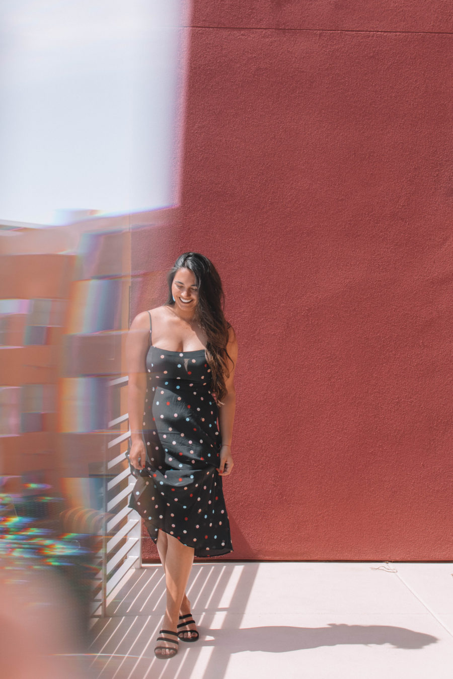 The Amelia dress is simple. It feels like one of those dresses you can just throw on for any occasion and you’ll look cute and put together. It looks more casual paired with a denim jacket and pointed toe boots or can be dressed up with heeled sandals. Bonus: the turquoise polka dots perfectly matched a pair of my Kendra Scott earrings to create the cutest summer look!
