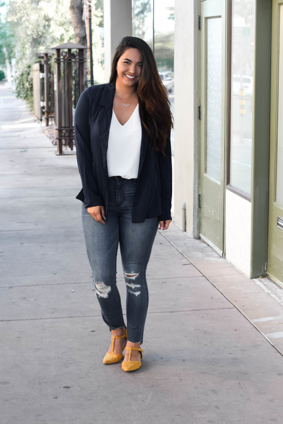 That’s why I think fashion is so important into helping body image. Instead of focusing on all the things that I don’t like – I focus on the clothes that make me feel empowered. I focus on the clothing that highlights my best features and fits me perfectly. When you learn to love yourself and your body, you start to find out what makes you feel the most confident. That’s how my personal style first began to evolve. For example, I love blazers and button ups. High waisted jeans with tucked in shirts are my jam.
