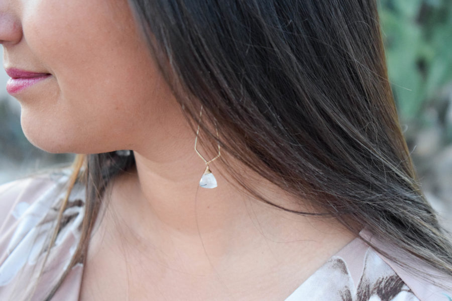 The earrings are a small biz find, from a small owner I stumbled upon at the MAGIC trade show in Las Vegas! The boutique name is My Lavender Crush – peep her on Insta! Her minimalist style jewelry is so pretty and the stones she uses are beautiful! I have another piece that I am also excited to show you and these earrings will be making a come back soon.
