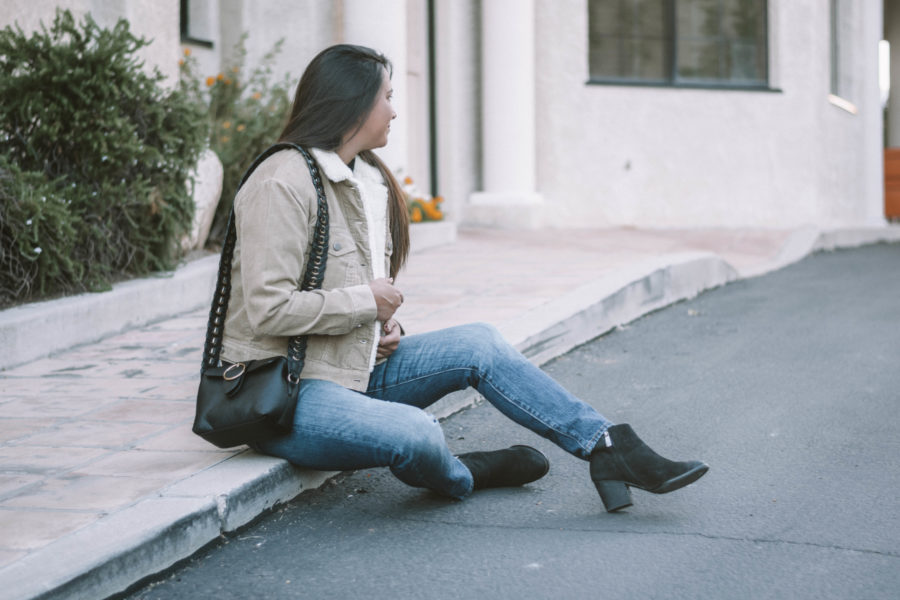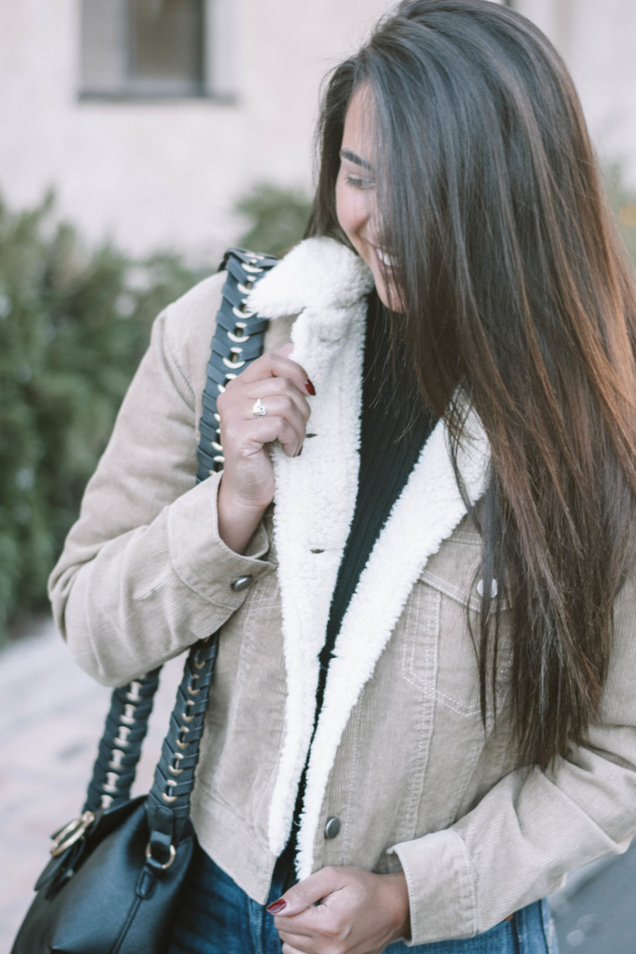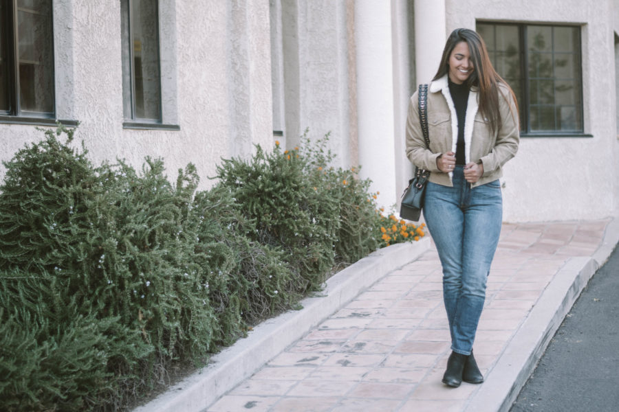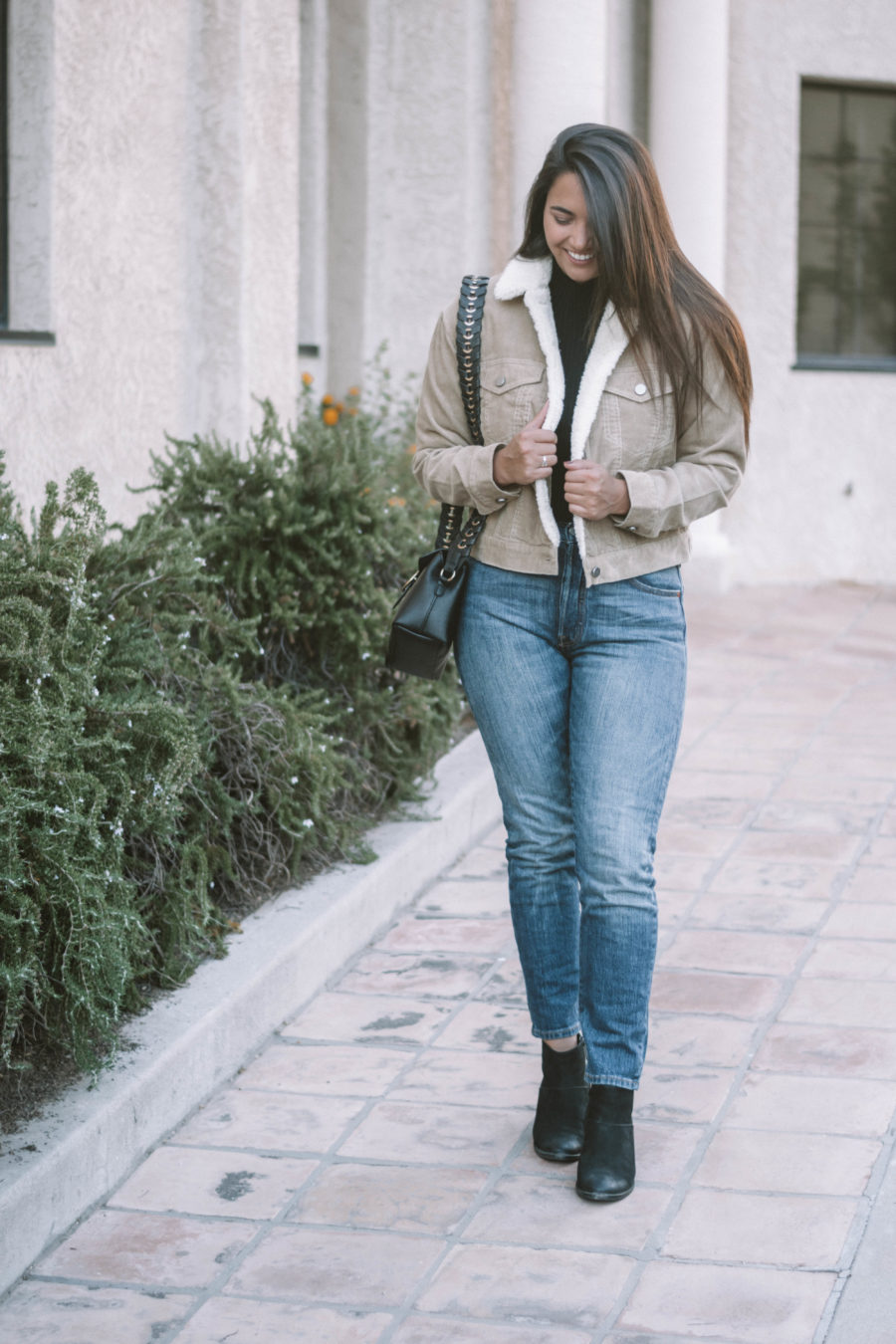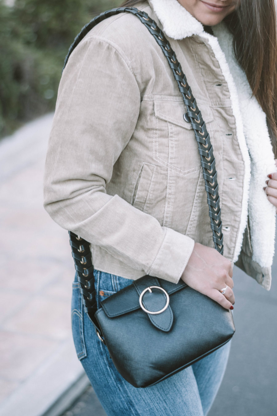 I paired the jeans with an old cropped turtleneck that I used to wear all the time, my favorite black booties, the jacket (of course) and this cute lil’ bag I picked up at Target.