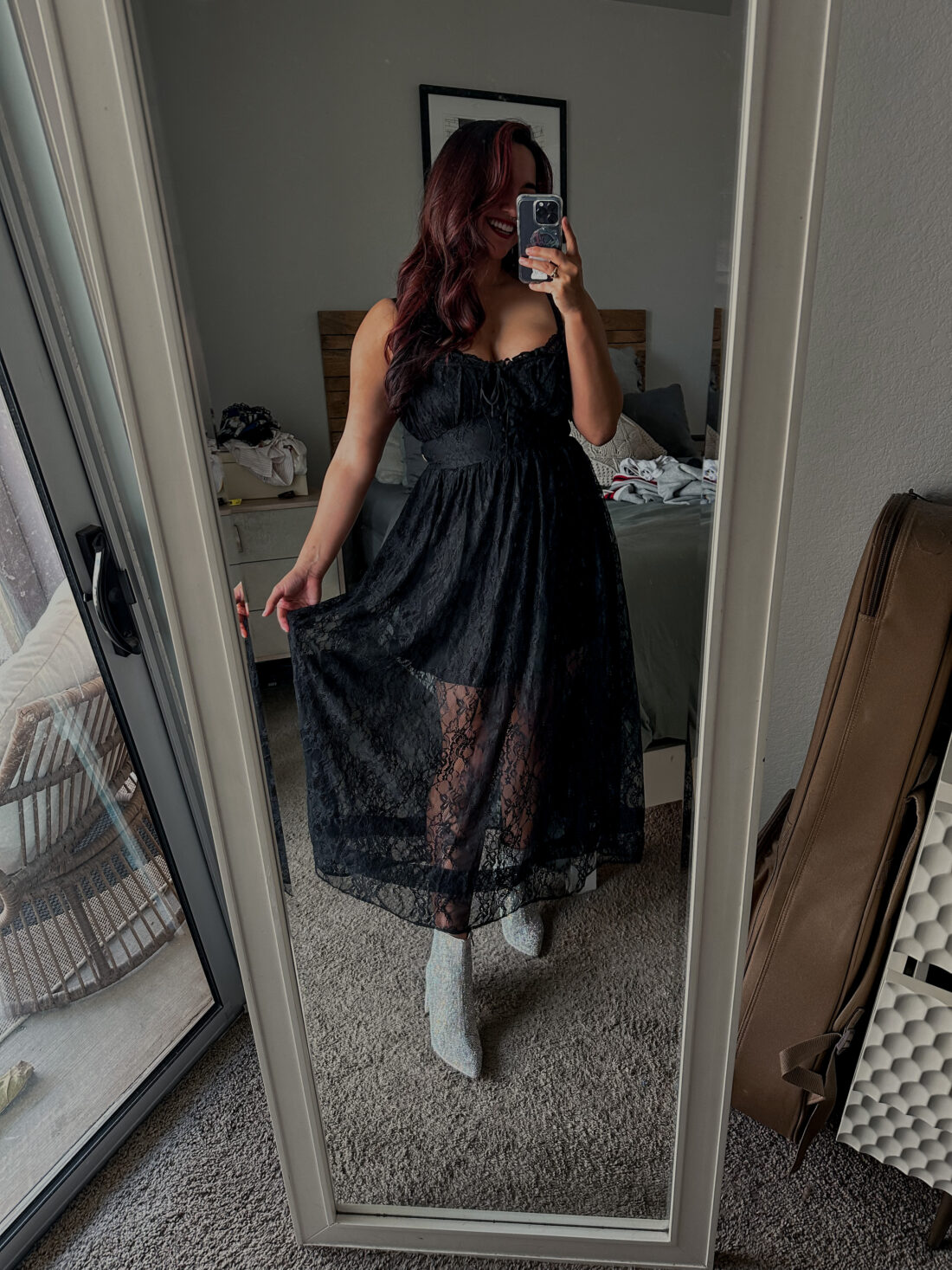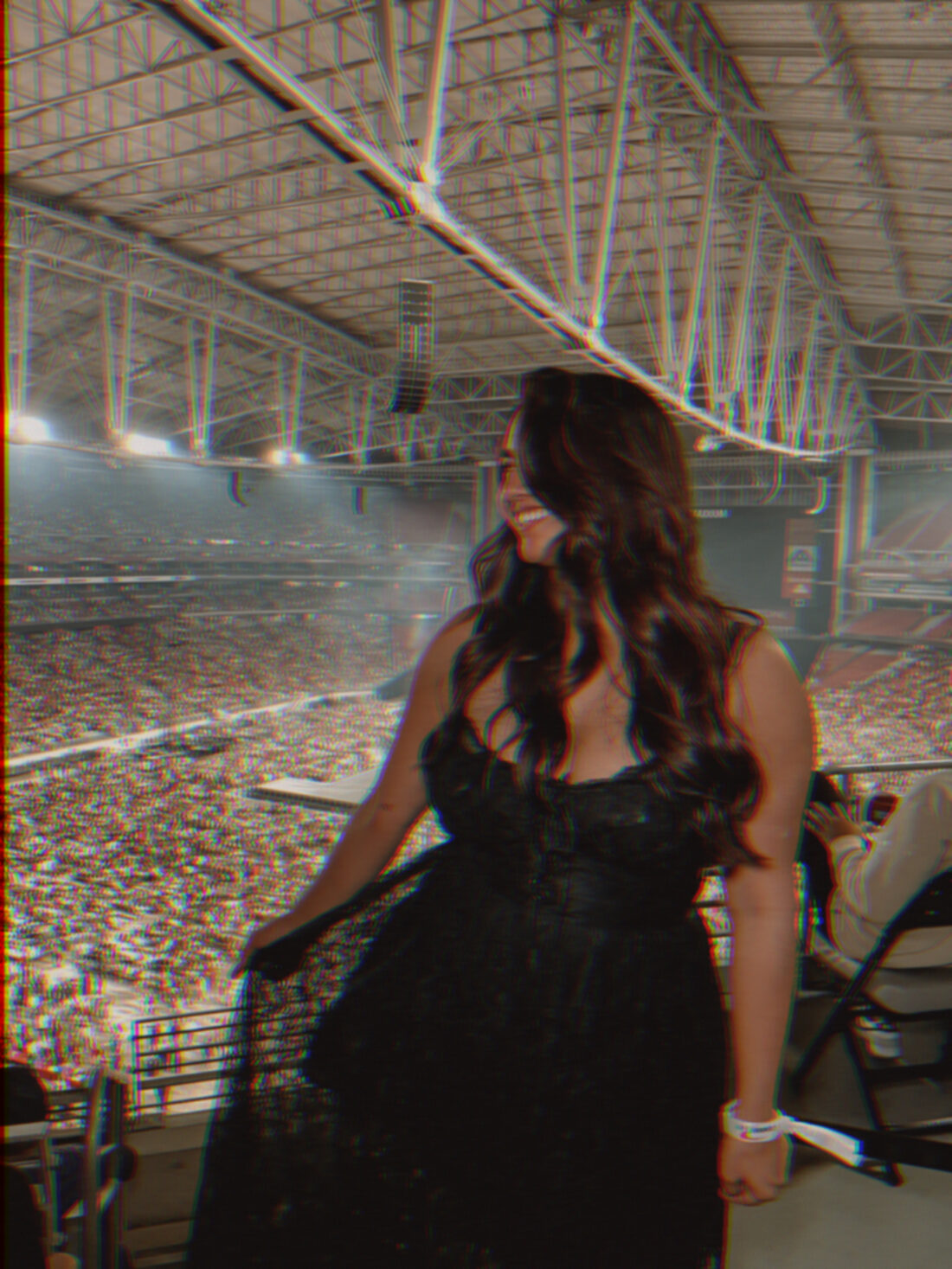 First thing is first – my tour outfit. My friend Caitlin shared a bunch of videos for tour outfit ideas if you want to check our her Instagram here. I went the ‘Reputation Era’ route with a lace dress and fun rhinestone boots. I got compliments on both all night and, just in time, both pieces are on sale.