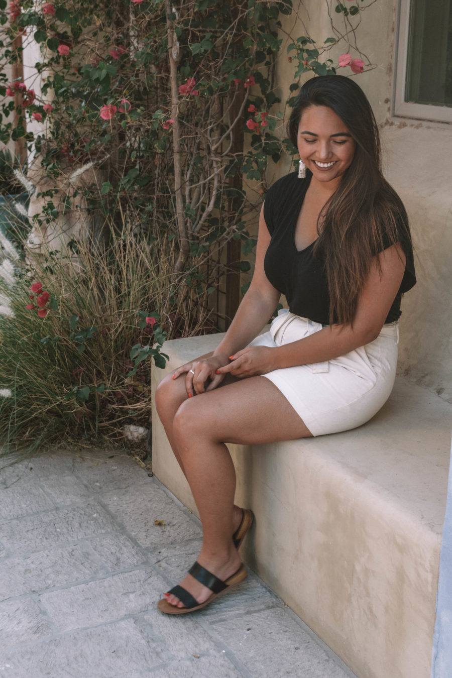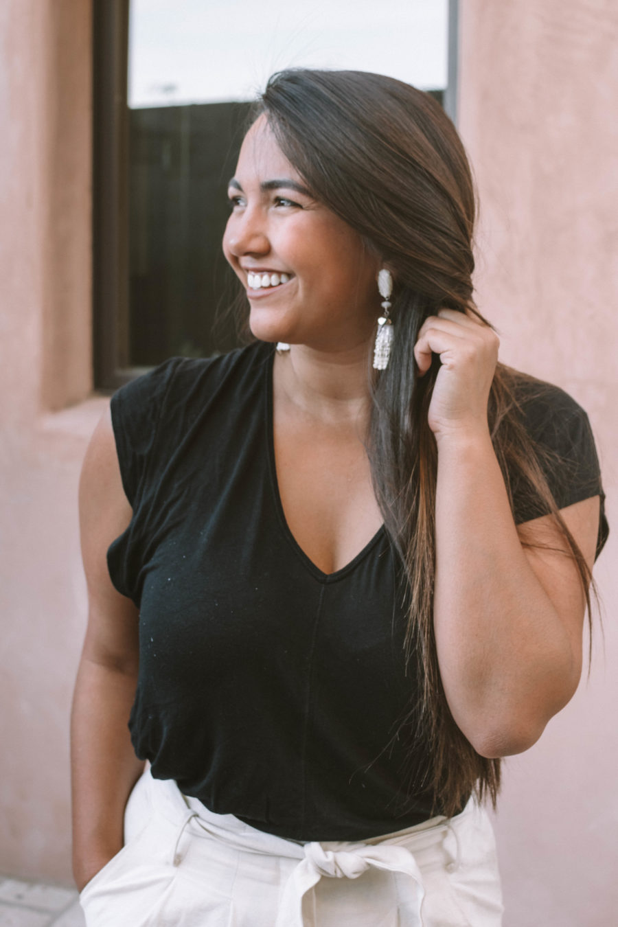 For this outfit, I was going for neutrals, so I paired them with my favorite black bodysuit and a pair of Kendra Scott earrings from their summer collection. As you can see, my favorite sandals are making another appearance too.