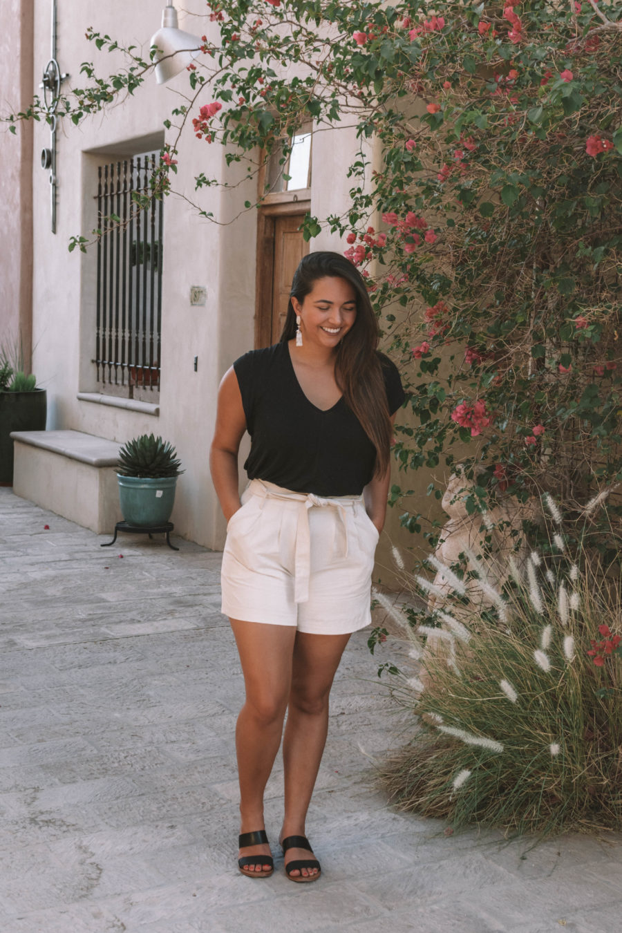 I’m usually always wearing athletic shorts or jean shorts, but I might have to add a cute pair of tie waist shorts to my shopping cart! I love how you styled them. So cute and effortlessy chic!