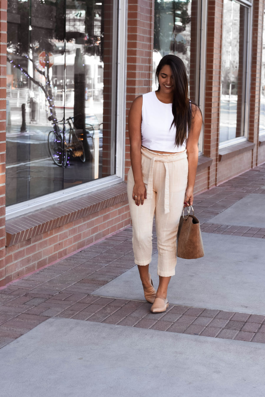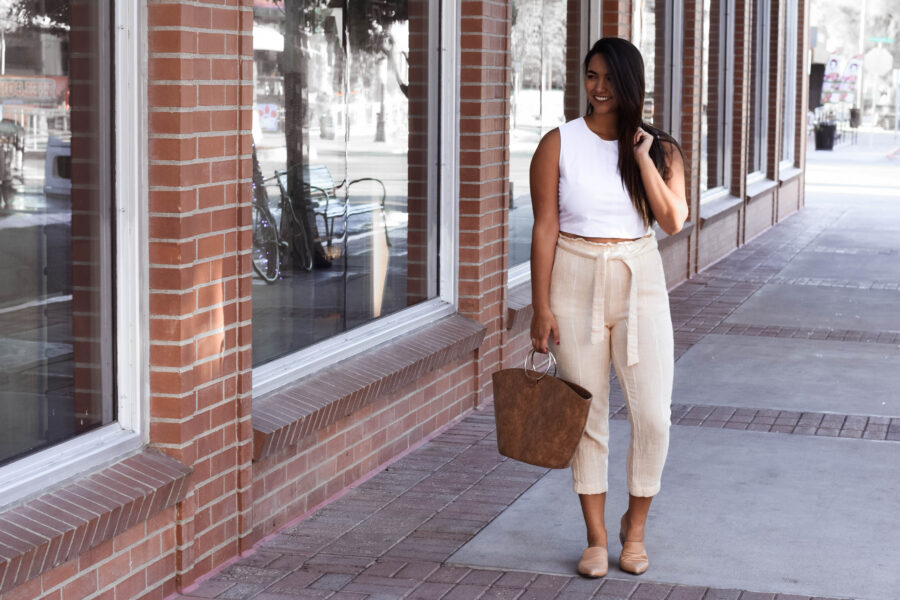 Do you ever find a pair of pants that’s just like so perfect that you have to share them with the world? Well, I found that pair of pants and they’re pretty reasonable for how much I’m going to wear them. For this look, I paired them with one of my all time favorite tops from Everlane, but if traveling, I’d probably throw on a loose tee and tuck the front in and the maybe a simple pair of slides similar to the ones I’m wearing.