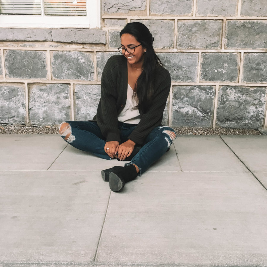 Cardigan: Goodshop Badshop // Top: Lilly Pulitzer // Jeans: Abercrombie // Booties: Nordstrom // Necklace: Mejuri // Earrings: Mejuri