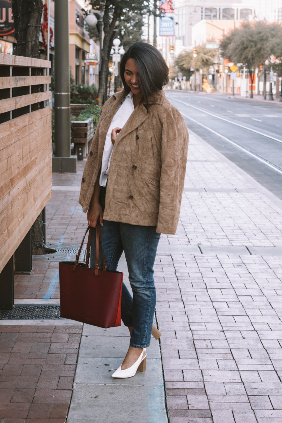 Jacket: Swap.com // Top: Madewell // Jeans: Levi’s // Shoes: ASOS // Purse: Fossil