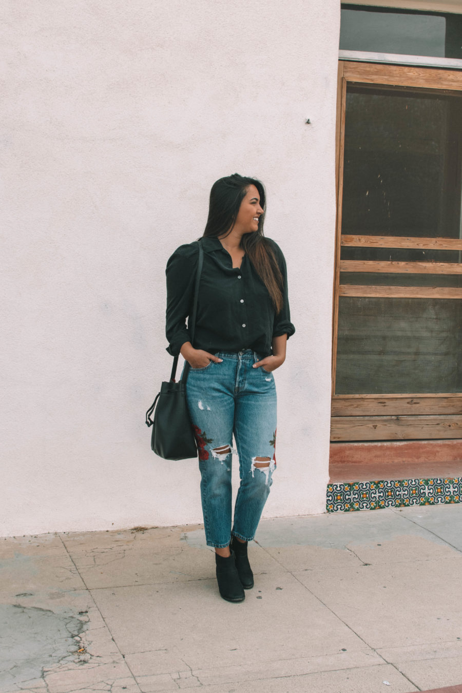 Shirt: Poshmark // Jeans: Levi’s // Shoes: Nordstrom // Bag: Marsi Bond