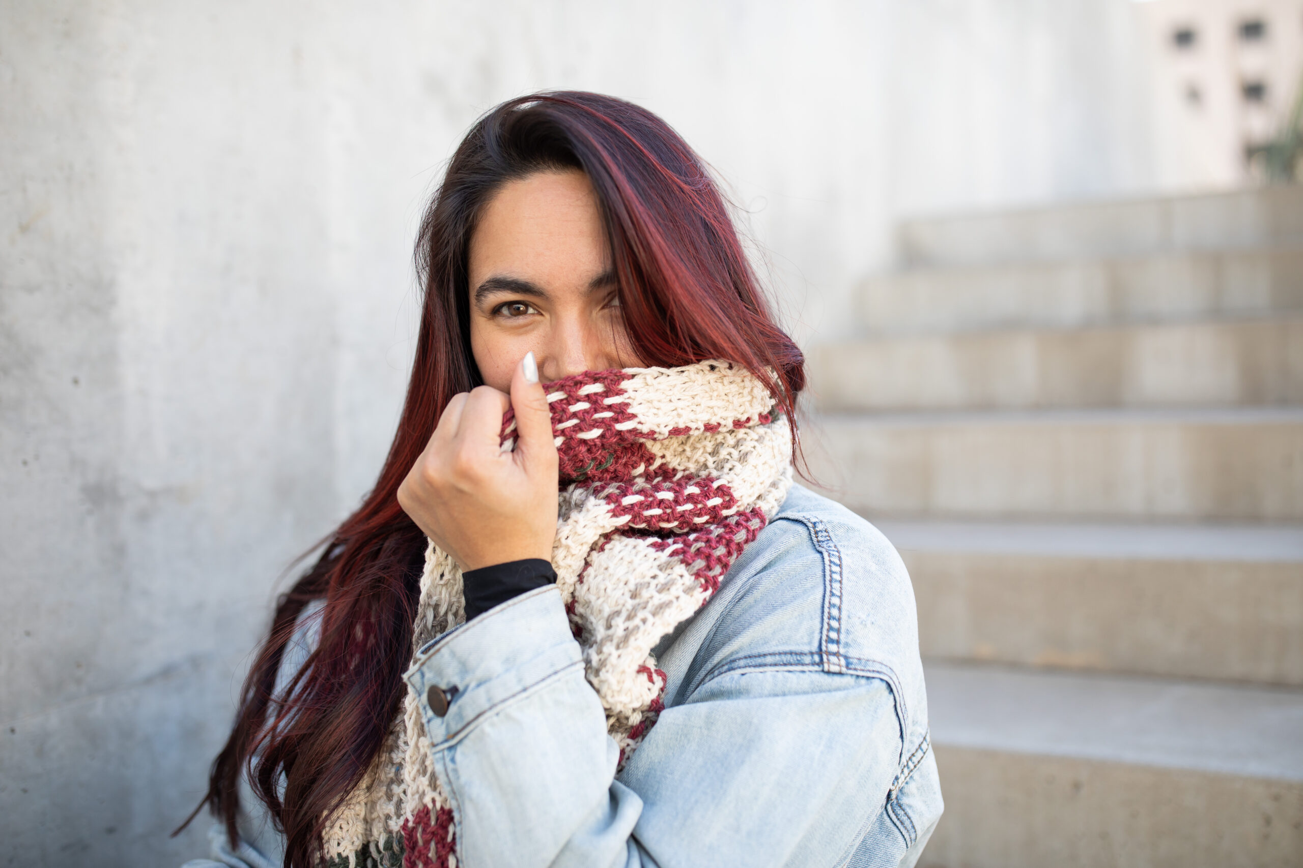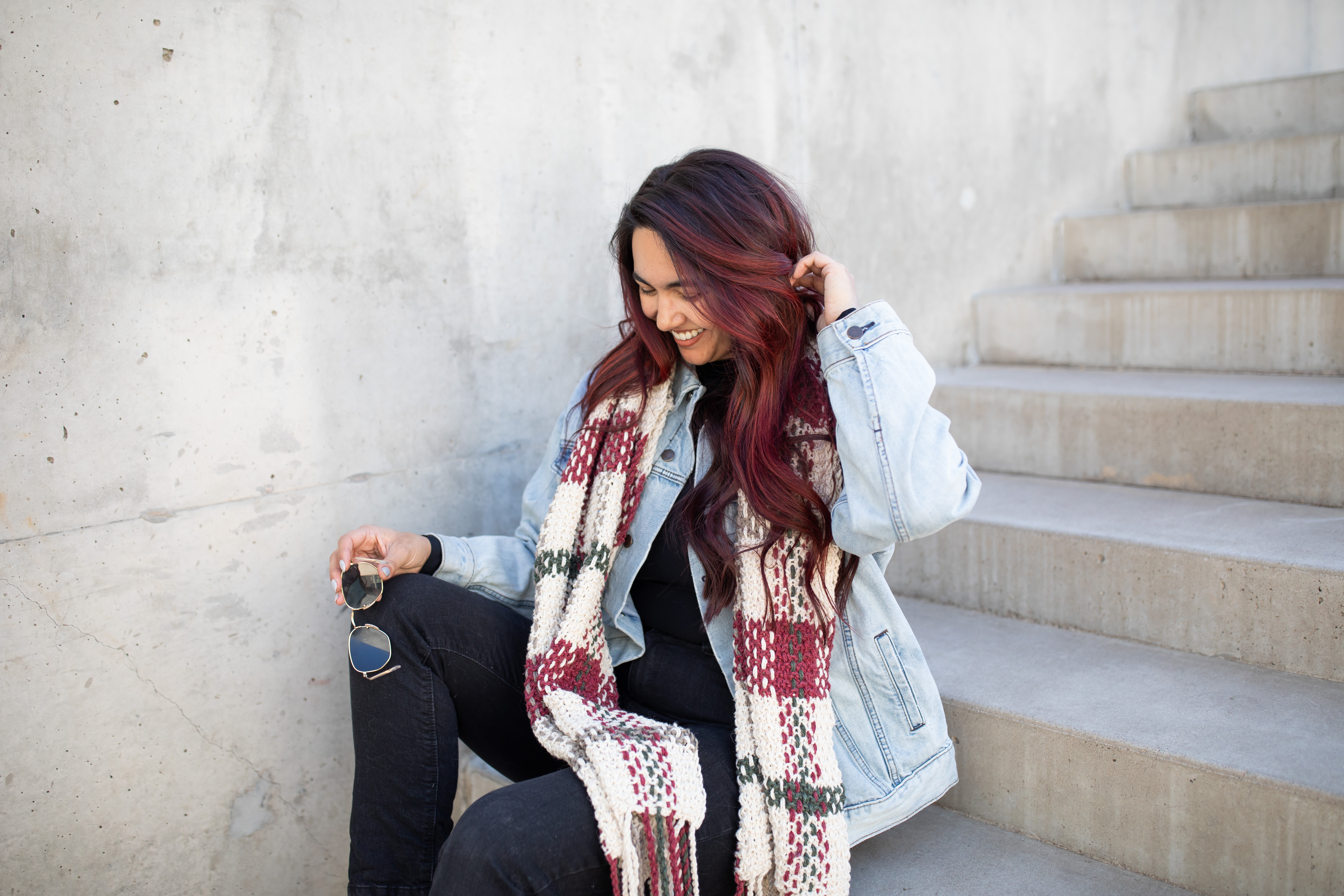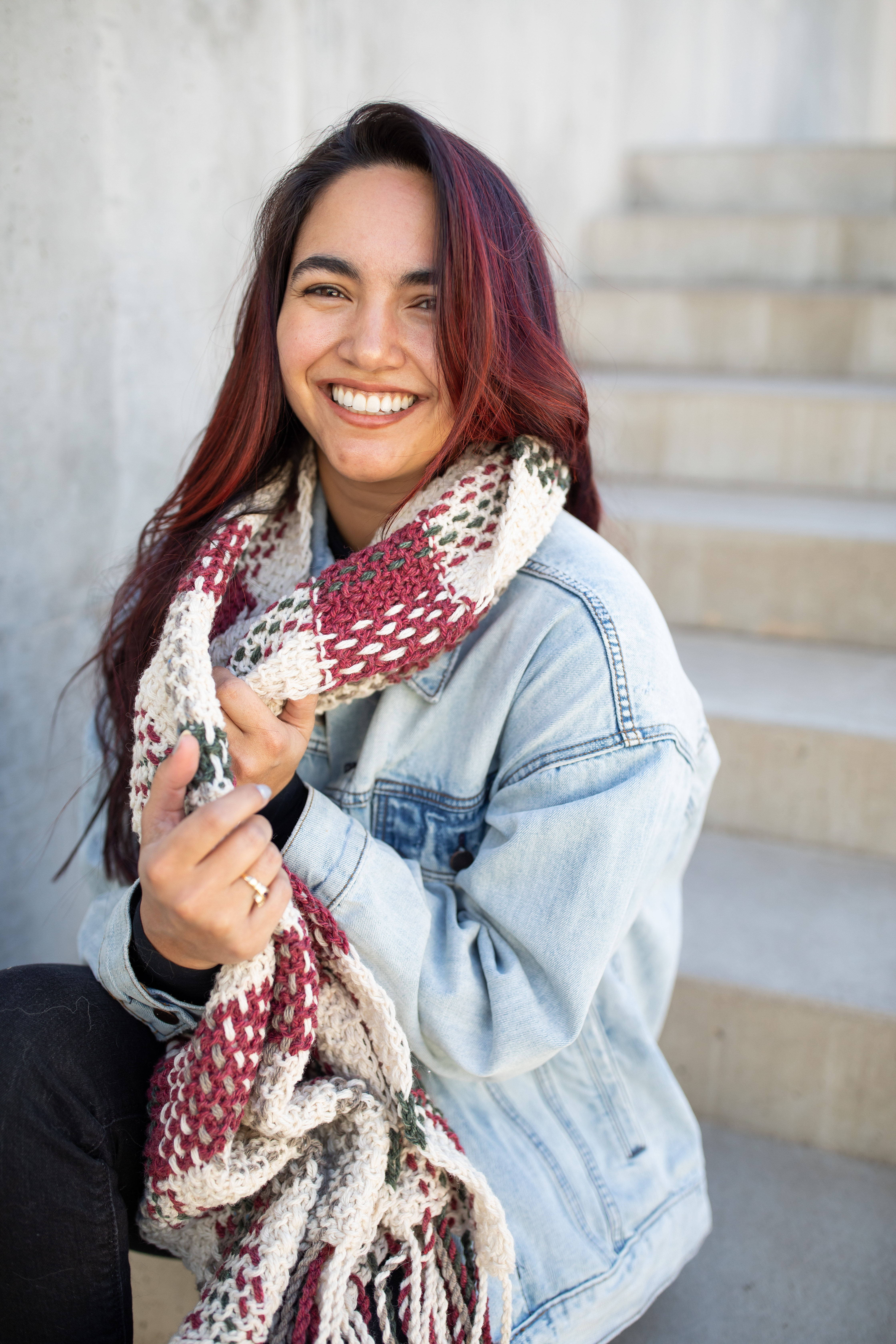 Want something shorter/thicker for a more cosy wrap? Adjust your cast-on stitch count or use a chunkier needle and try knitting with a slightly chunkier yarn! Personally, I added 4 additional rows to each red section for larger color sections and a bit of overall length to my scarf.