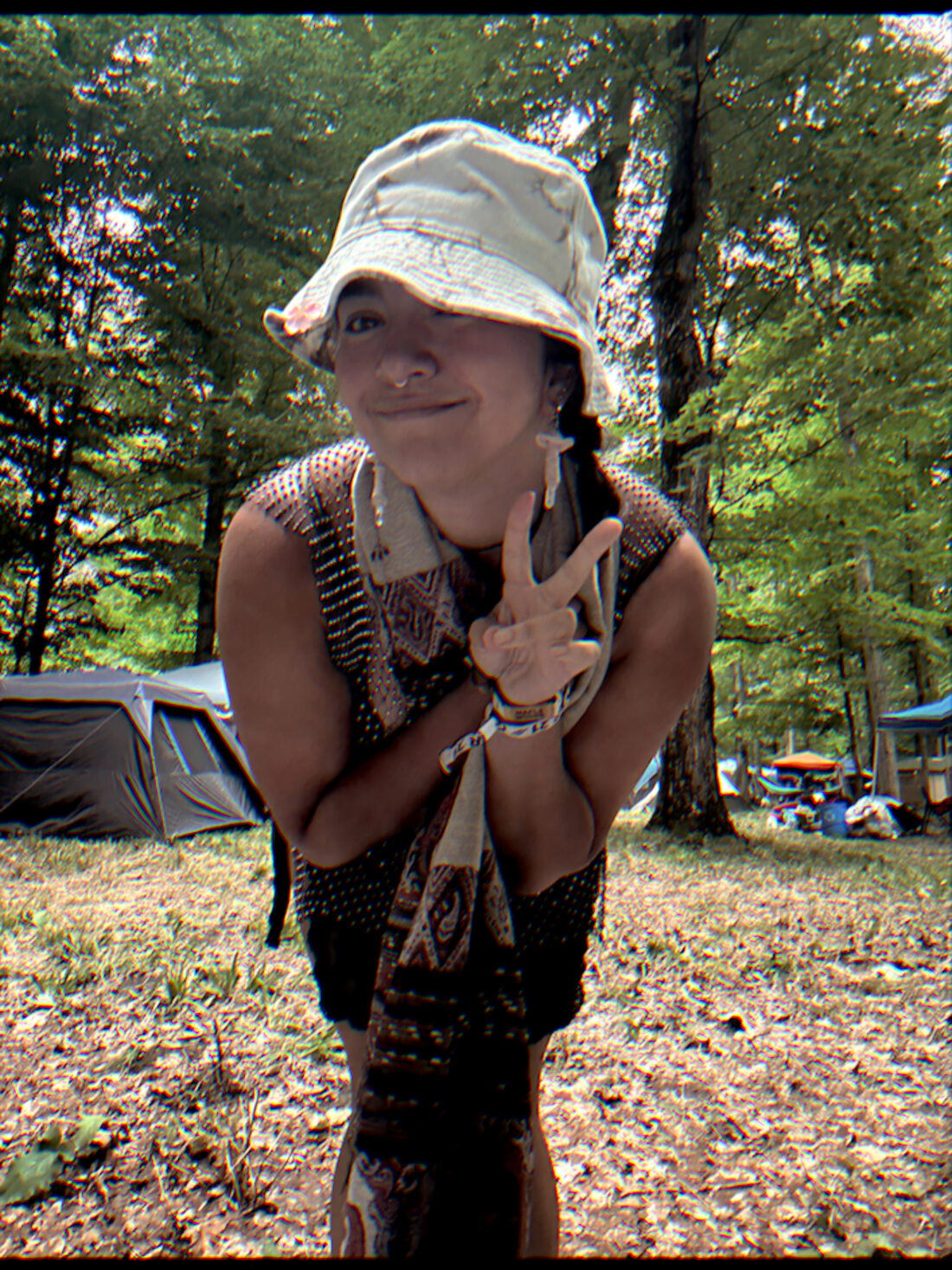 I actually wore two outfits on day 4, but only got this one photo. I wear wearing some mushroom earrings from Etsy with a dress and mesh cover up. I, of course, wore a bucket hat and pashmina for the full forest vibe.