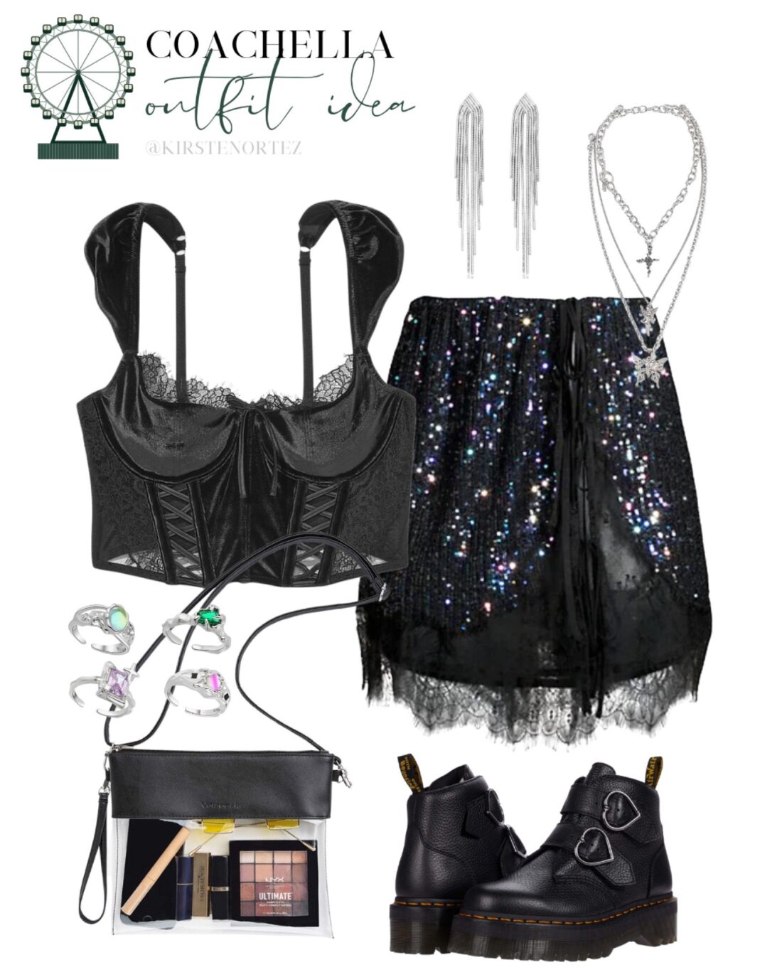 I love being able to fully express my style at Coachella, which means I can wear something a little more revealing if I’d like. However, I still like to feel supported, so a corset bra top is the perfect mix. Paired with a cute slip and Dr. Martens – you have a unique look even if you want to stick to an all-black outfit.