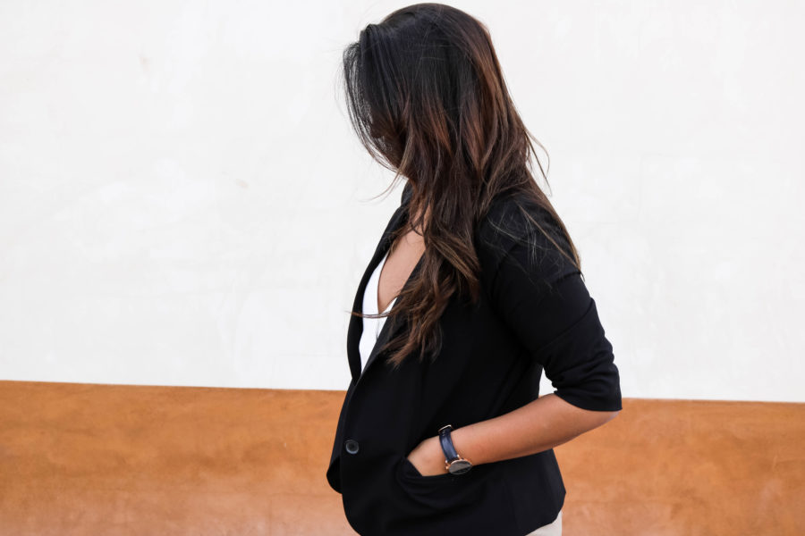 The watch is from Welly Merck and I was surprised at how high quality it is! It’s got a very similar style to the trendy minimalist watches that are all over the ‘gram right now. I got their black face watch with rose gold detailing and actually decided on the navy strap. I was hesitant about black and navy together, but I like how it looks in this watch. It’s especially nice for work outfits, when sometimes, you end up having to wear the two colors together (it can be done)! You can also get 20% off with my coupon code: KirstenOrtezwm
